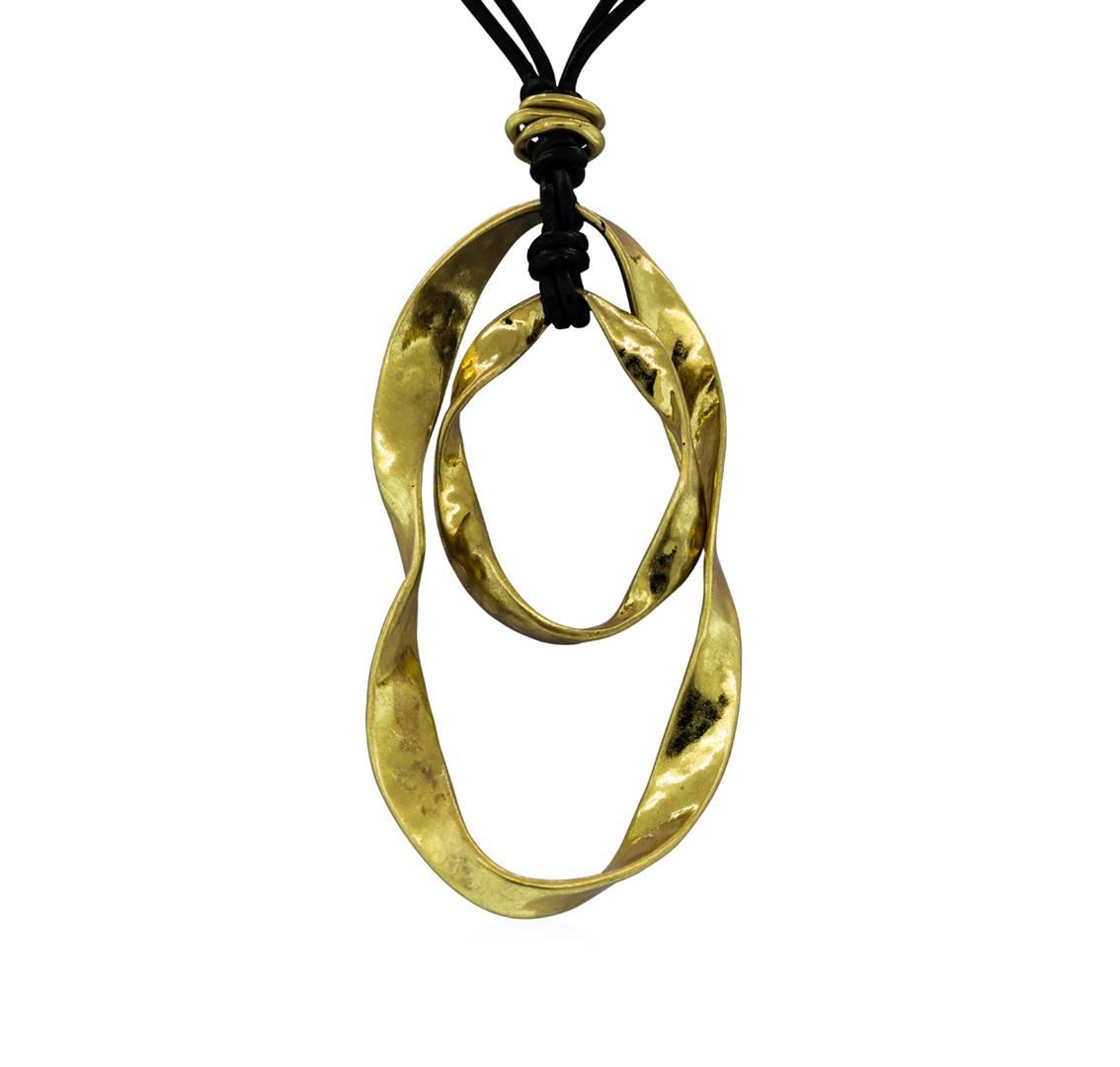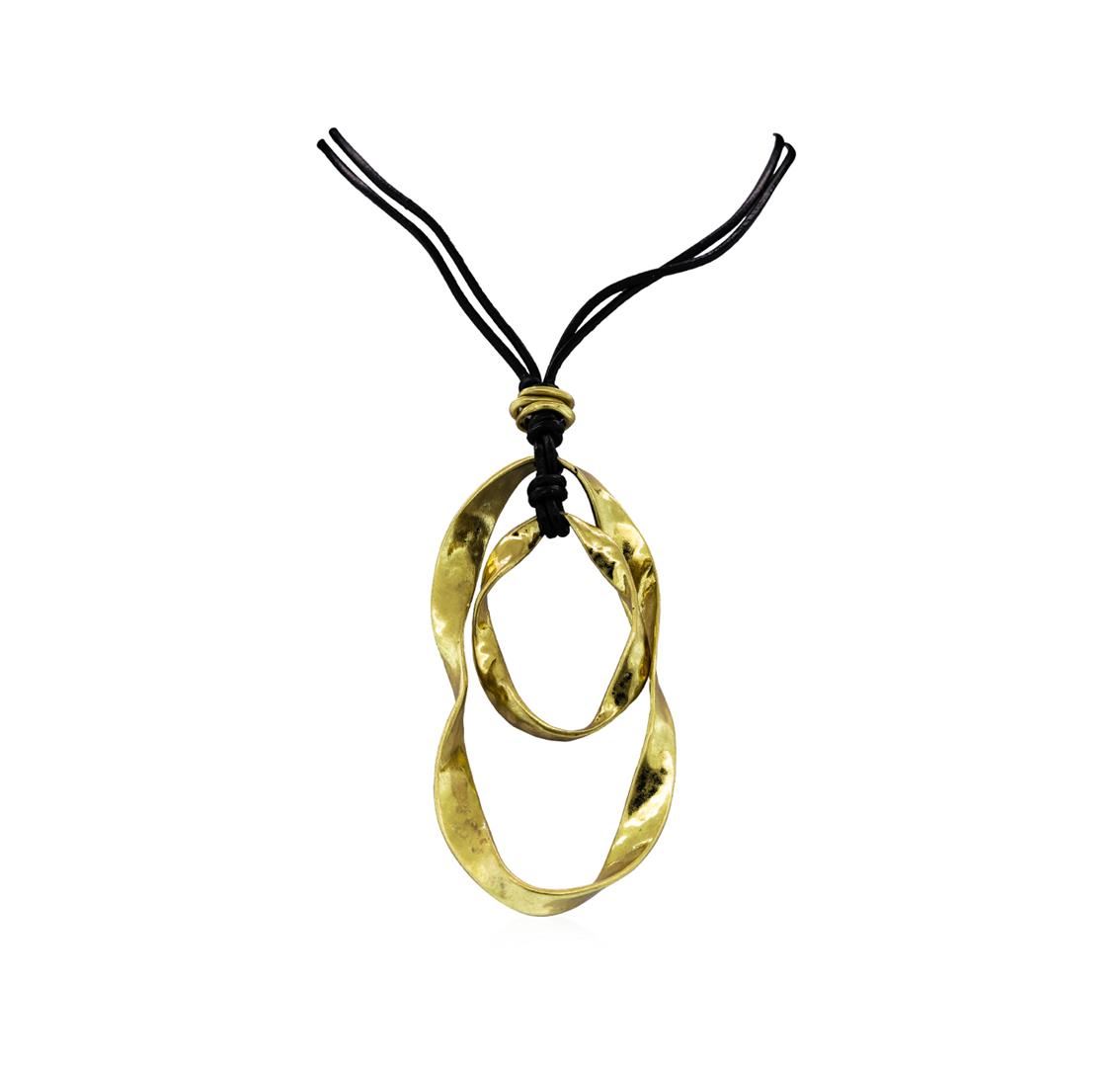 High end designer jewelry. Circle Design Leather Necklace - Gold Plated. Gold Plated Metal/3" Ext Clasp. Black/ Gold. 36/3inches.