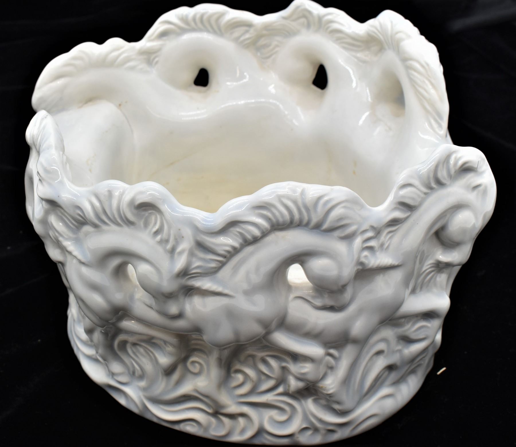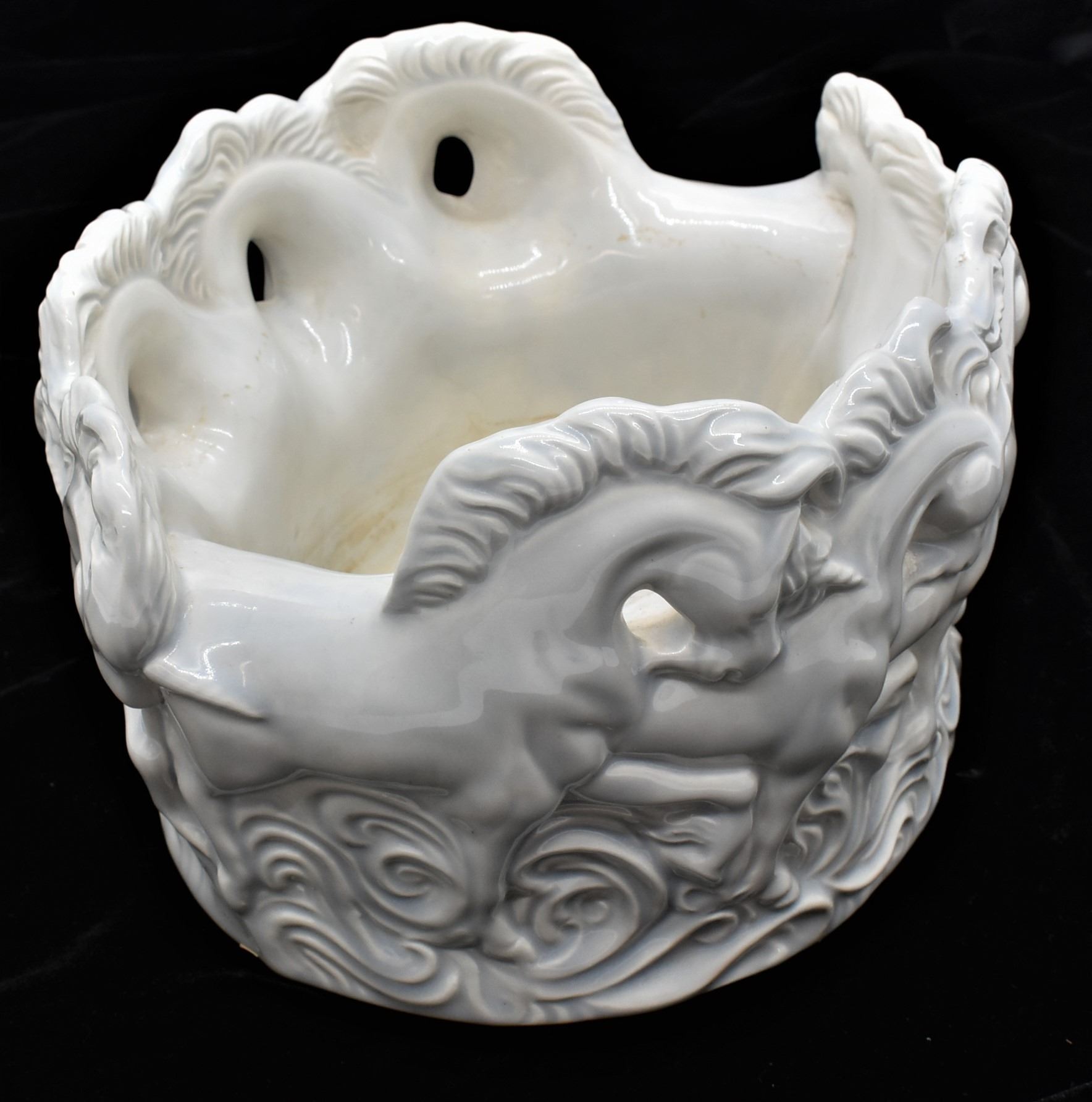 Vintage Circle of Horses Ceramic Planter, measures 9'' x 5.5'', marked on the bottom Holland Mold