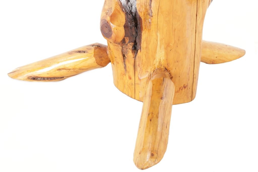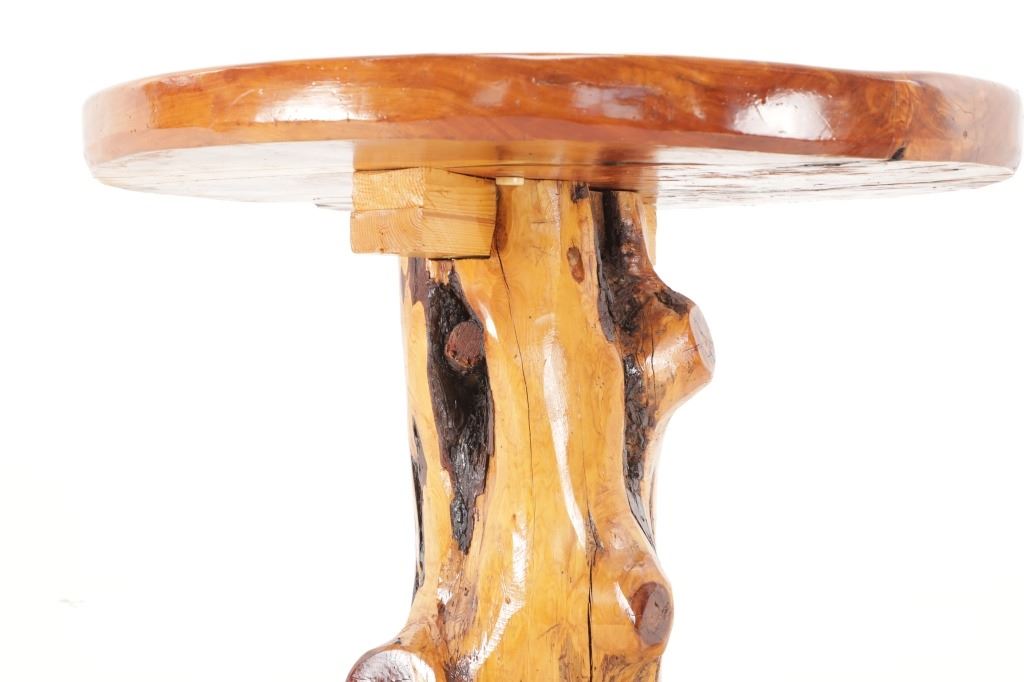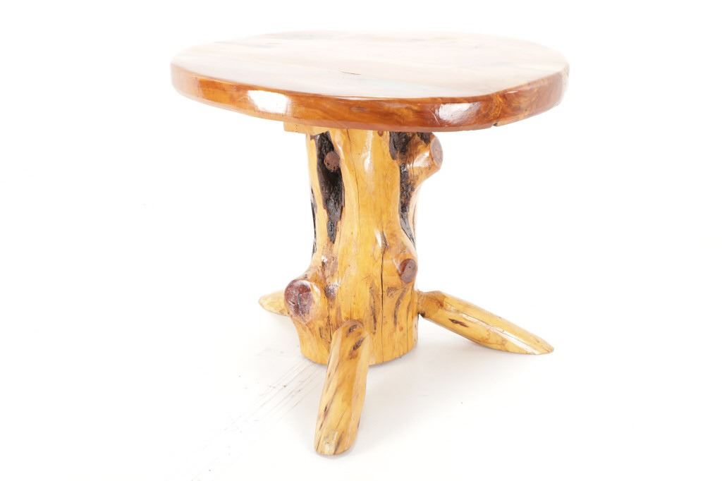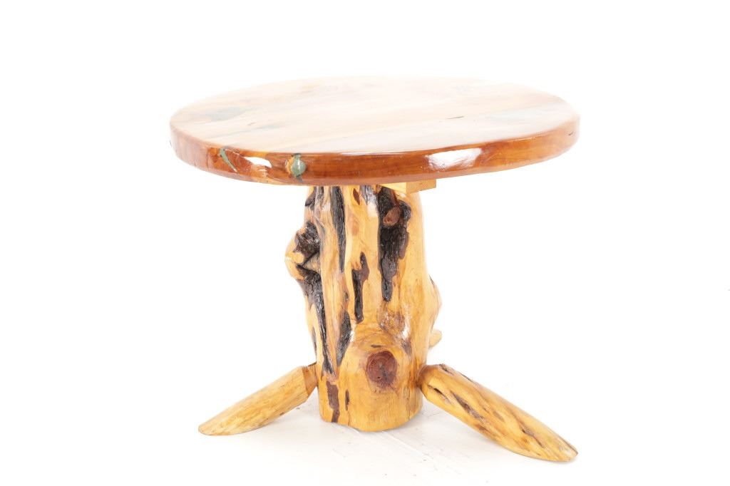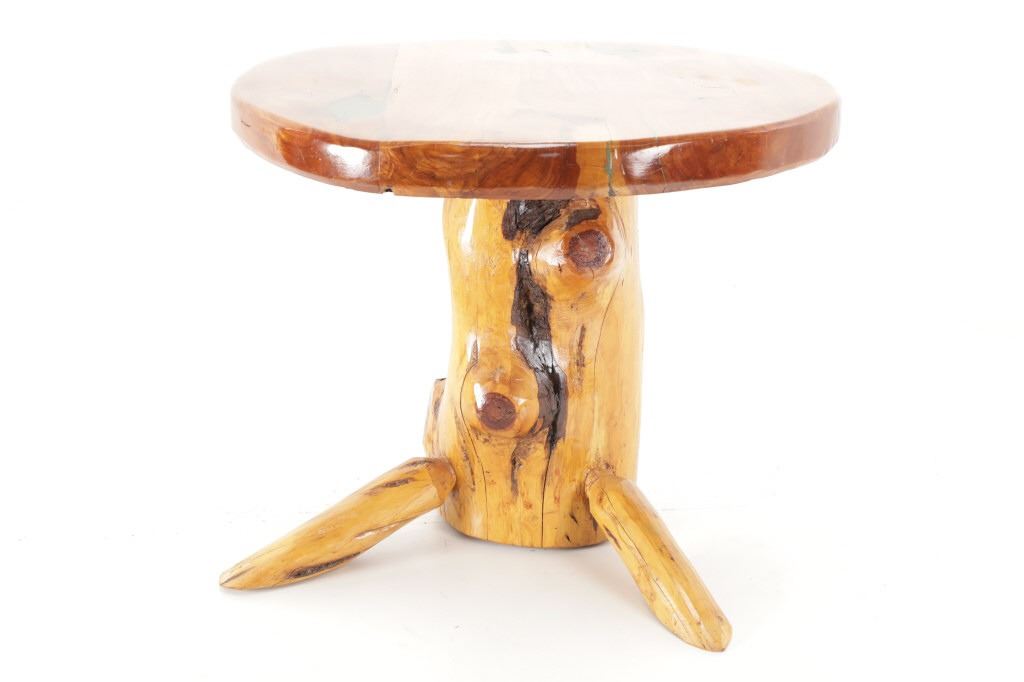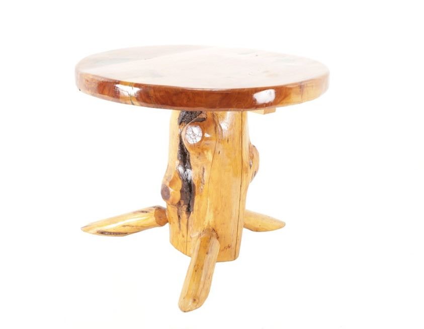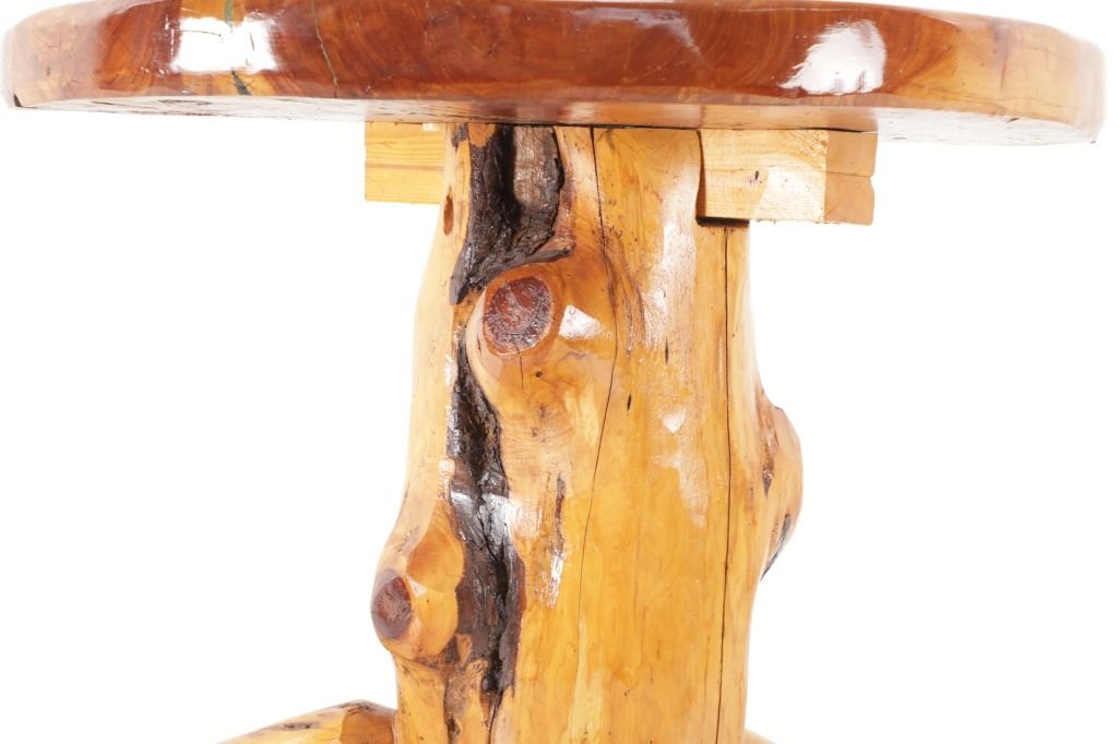 Featured in this lot is a Circular Burl Wood Accent Table. The unique characteristics of burl wood with its smooth, interlocked grain structures present a canvas for woodworkers to create one-of-a-kind pieces that accentuate the inherent beauty of the wood. The inherent stability of burl wood, despite its deformed growth, makes it an attractive choice for woodturning, as it rarely warps or splits when drying.