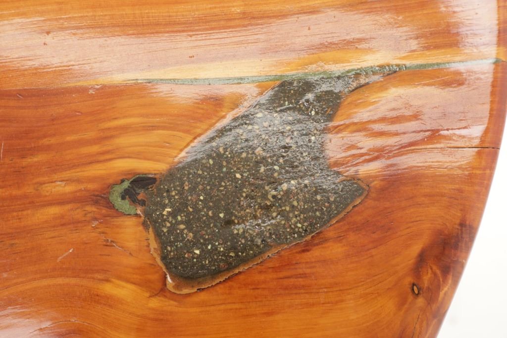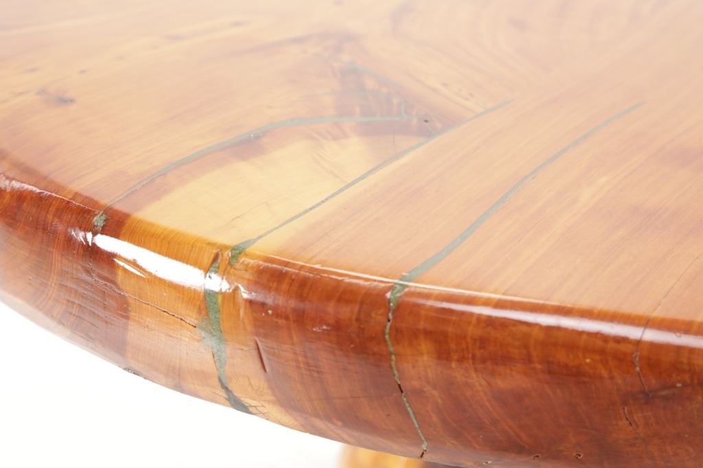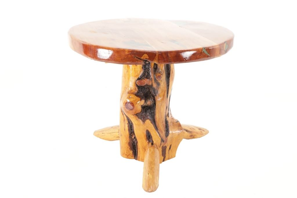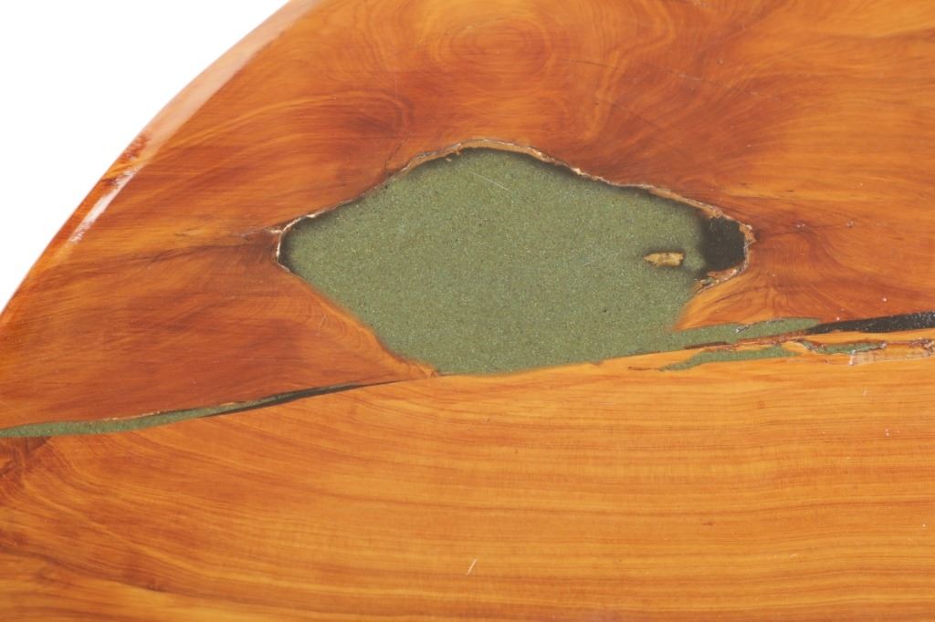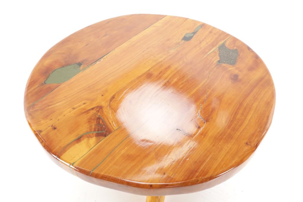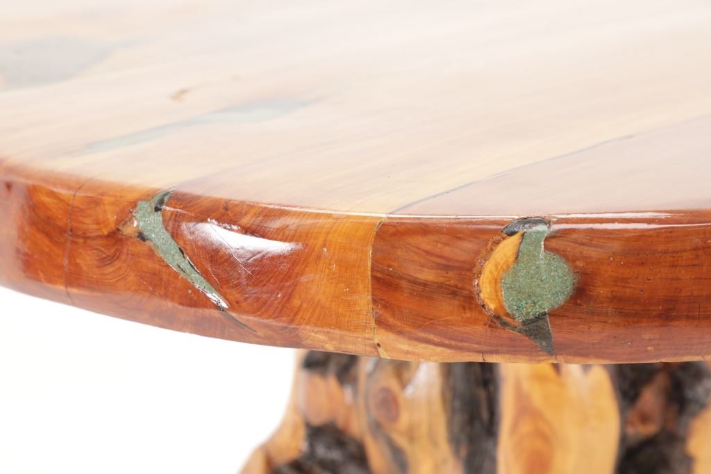 Featured in this lot is a Circular Burl Wood Accent Table. The unique characteristics of burl wood with its smooth, interlocked grain structures present a canvas for woodworkers to create one-of-a-kind pieces that accentuate the inherent beauty of the wood. The inherent stability of burl wood, despite its deformed growth, makes it an attractive choice for woodturning, as it rarely warps or splits when drying.