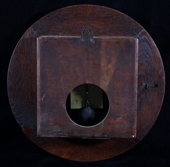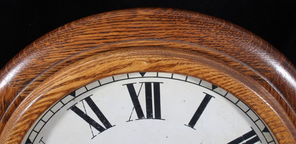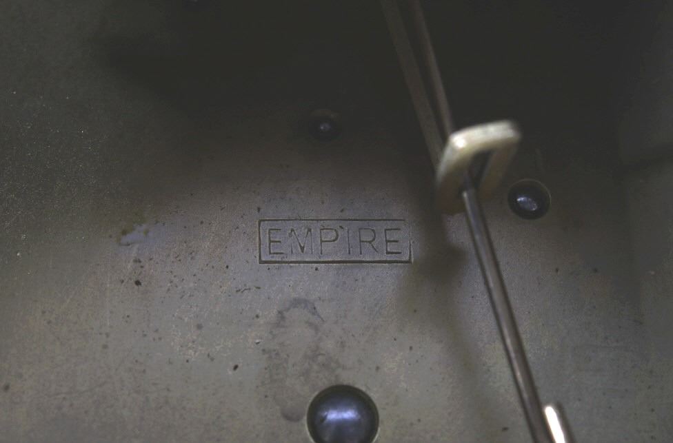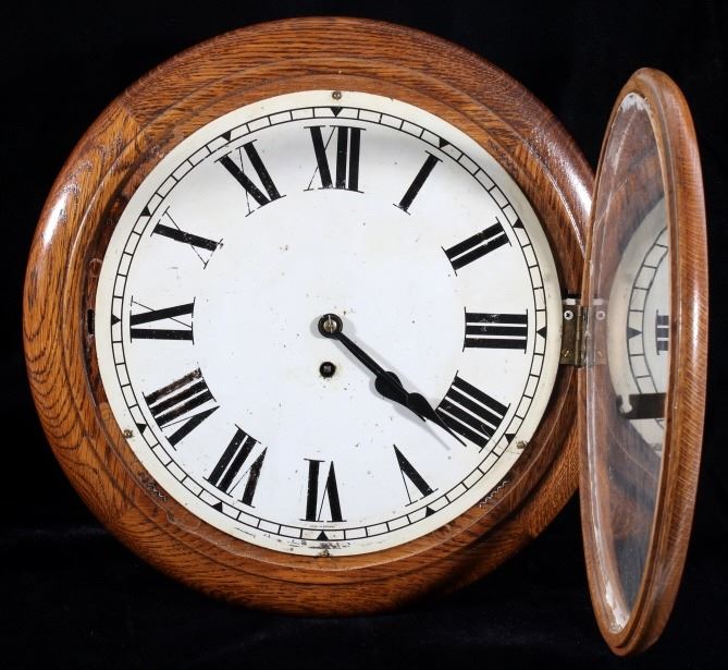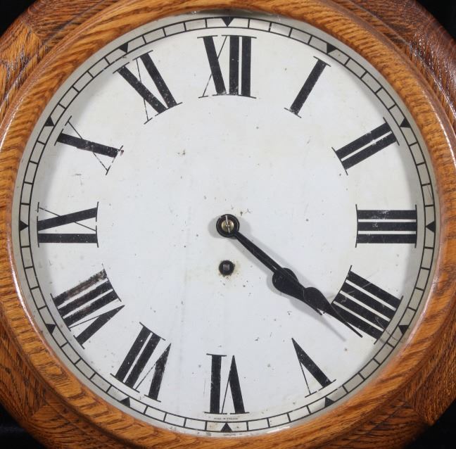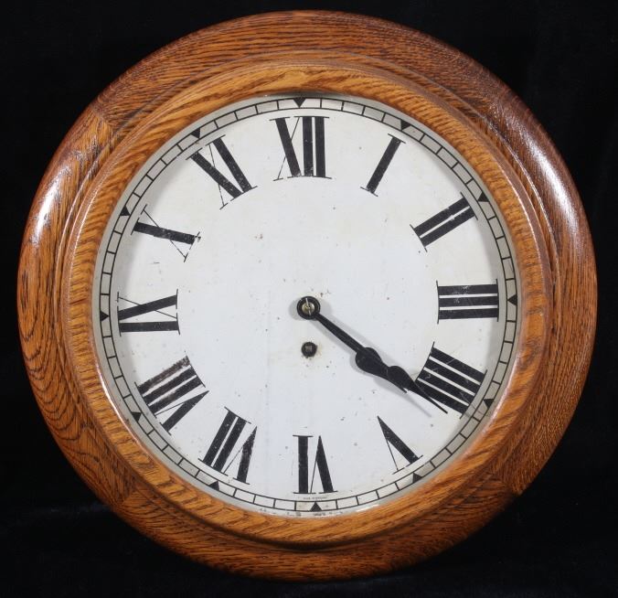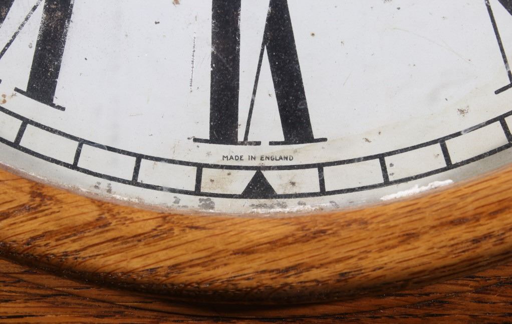Included in this lot we have a circular Smith Empire oak wall clock originating from the mid to late 20th century. The clock shows oak construction with a paper face and brass gear works. The face of the piece is marked "Made in England" and shows roman numerals for each hour. The brass clock work is stamped in the back reading "Empire - Made In England - E 15(36". The clock comes with a clock key that is marked "Herschede Hall Clock Co. Cin, O. U.S.A." indicating its not the original key. The clock shows fair condition overall with the pendulum missing and the glass is starting to come free of the housing. The clock measures 15 1/2" in diameter by 5 1/4" deep.