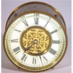Circular brass French movement mantelclock, 9cm round