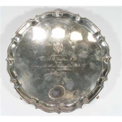 Circular silver four footed salver, Chester 1913, 27cm diameter, approx 17ozs