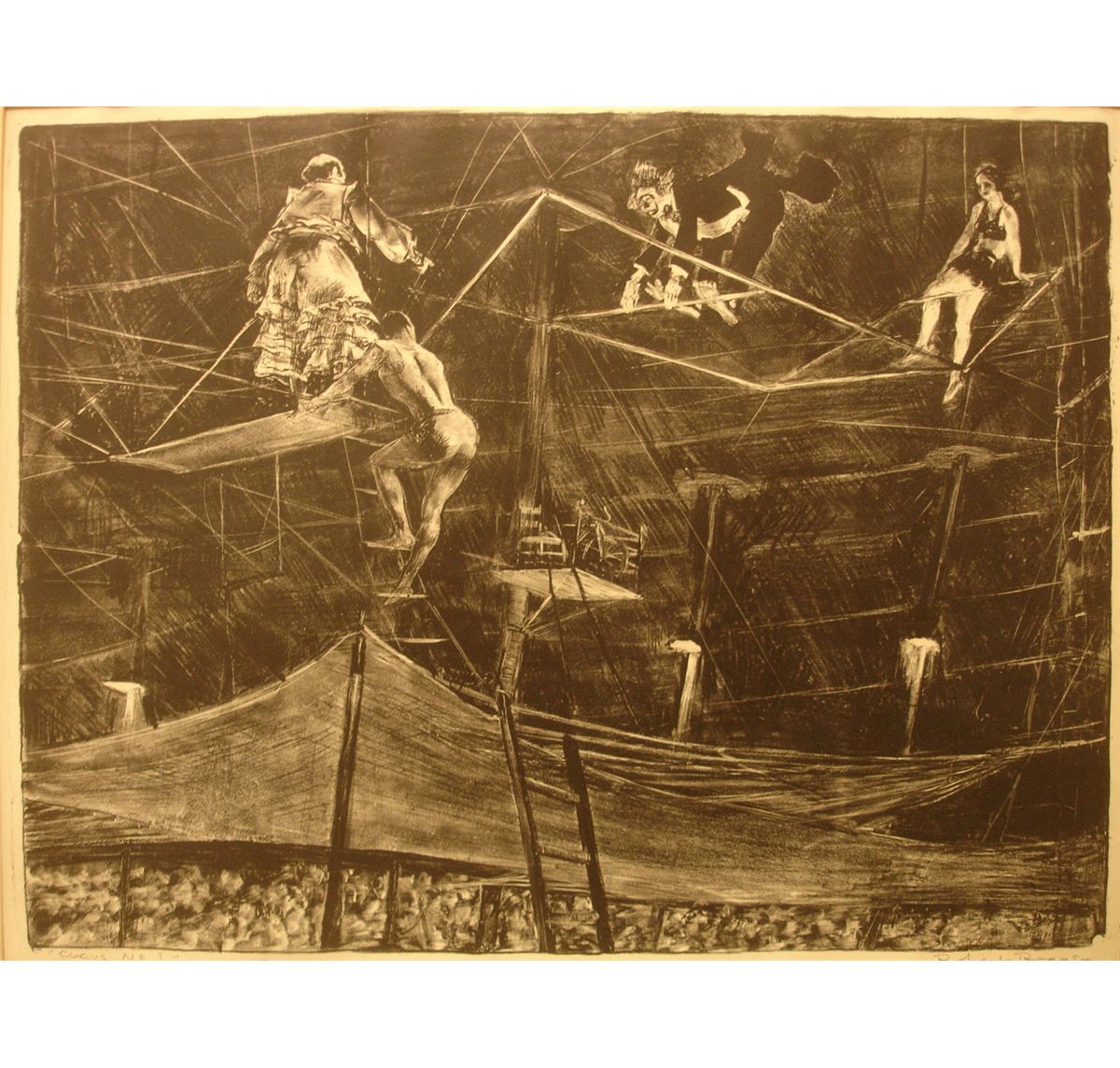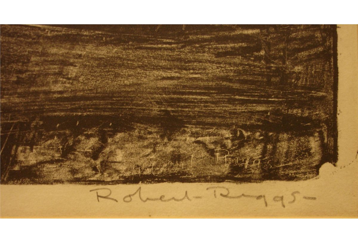 Good condition. Signed L/R. Sheet is glued on a matt board frame.