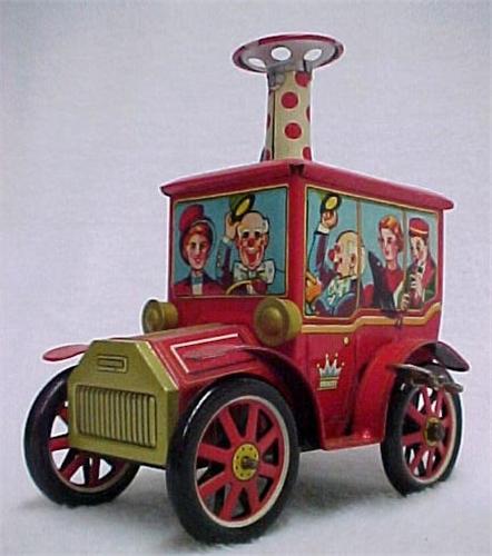 Circus Clown Car; tin wind-up toy; working condition; KO Made in Japan; 5" h (no visible defects)