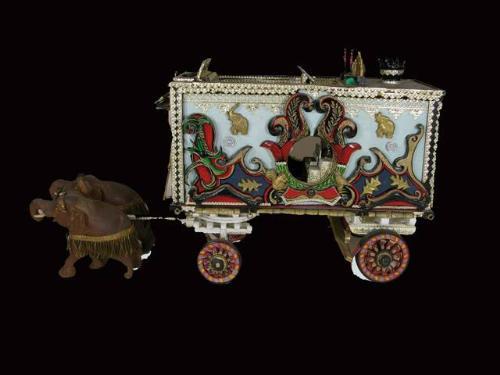 Circus Pipe Organ wagon with two elephants handcrafted by local artist, 16 inches long. Excellent Condition.