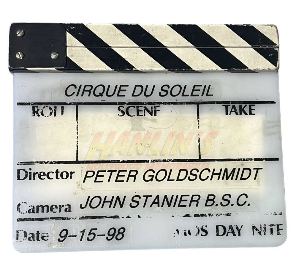 Clapperboard from the production of the film of the Cirque du Soleil to celebrate the opening of the "Bellagio" hotel in Las Vegas commisioned by the owner Steve Wyne.