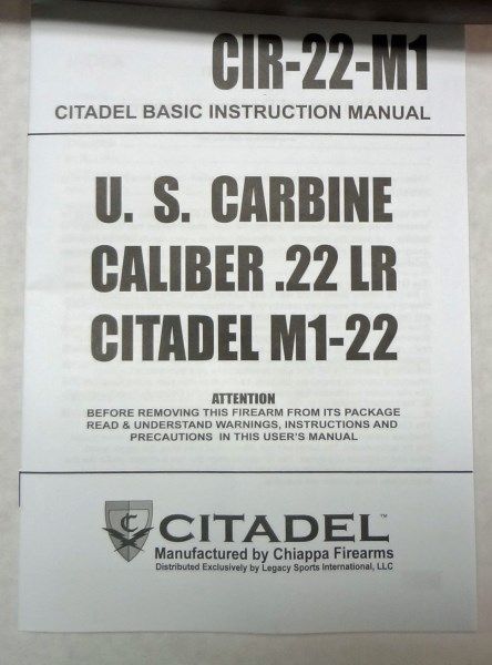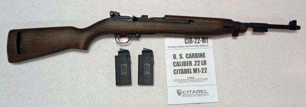 Citadel M-1 Carbine 22 LR. Finish - Blue. Action - Semi-Automatic. Stock - wood. Capacity - 10+1. Magazines - 2. Safety - Cross-Bolt Safety. Sights - Ft:Fixed Rr:Adjustable. Barrel Length - 18". Overall Length: 35". Weight - 4.8 lbs. ***Comes with a lifetime guarantee*** EST $399-$450