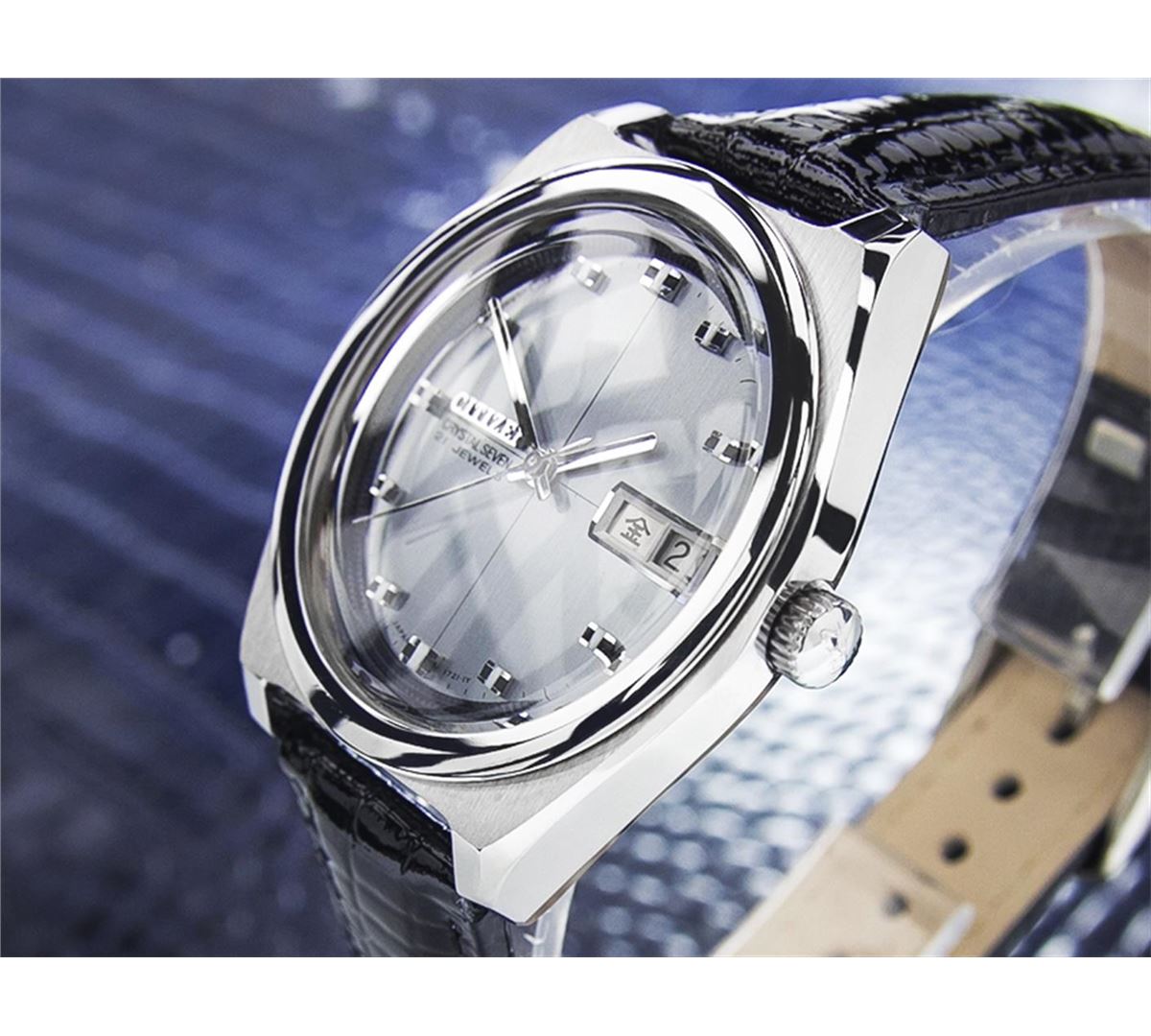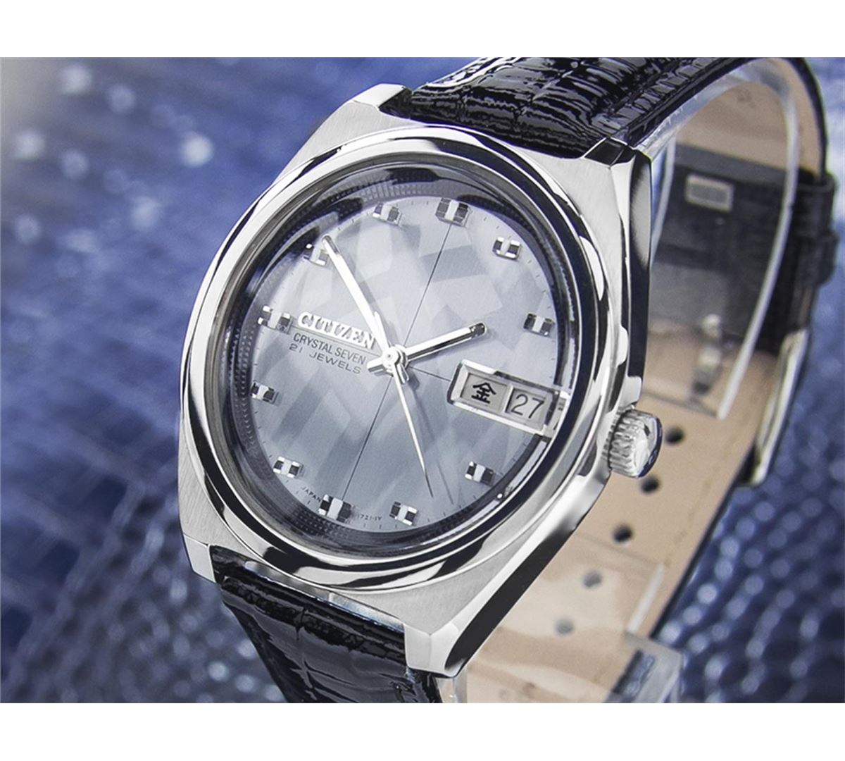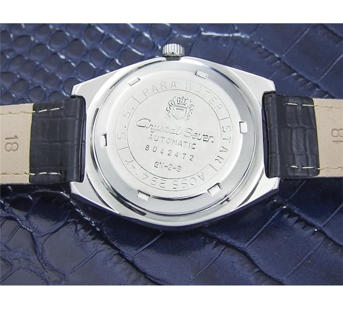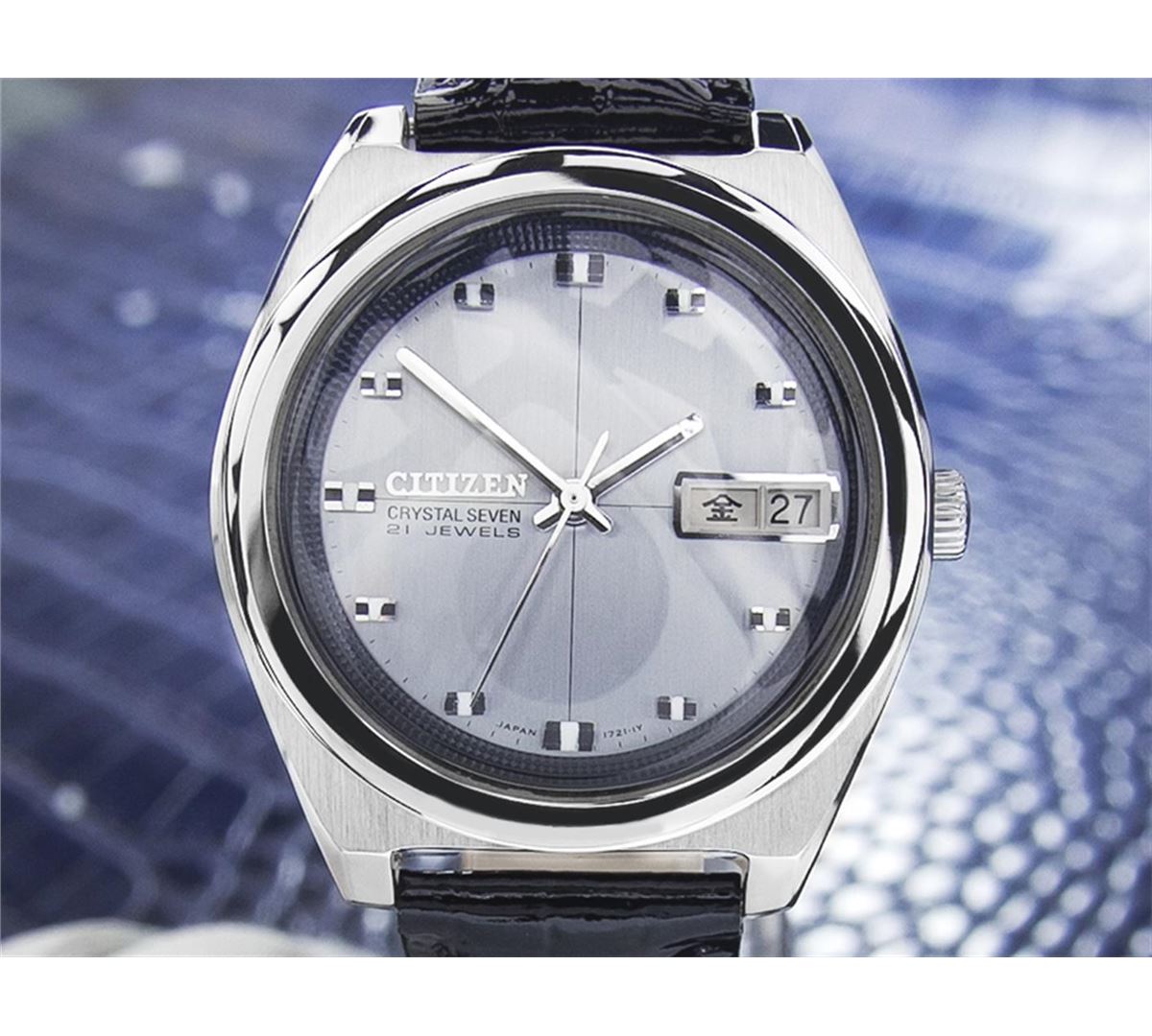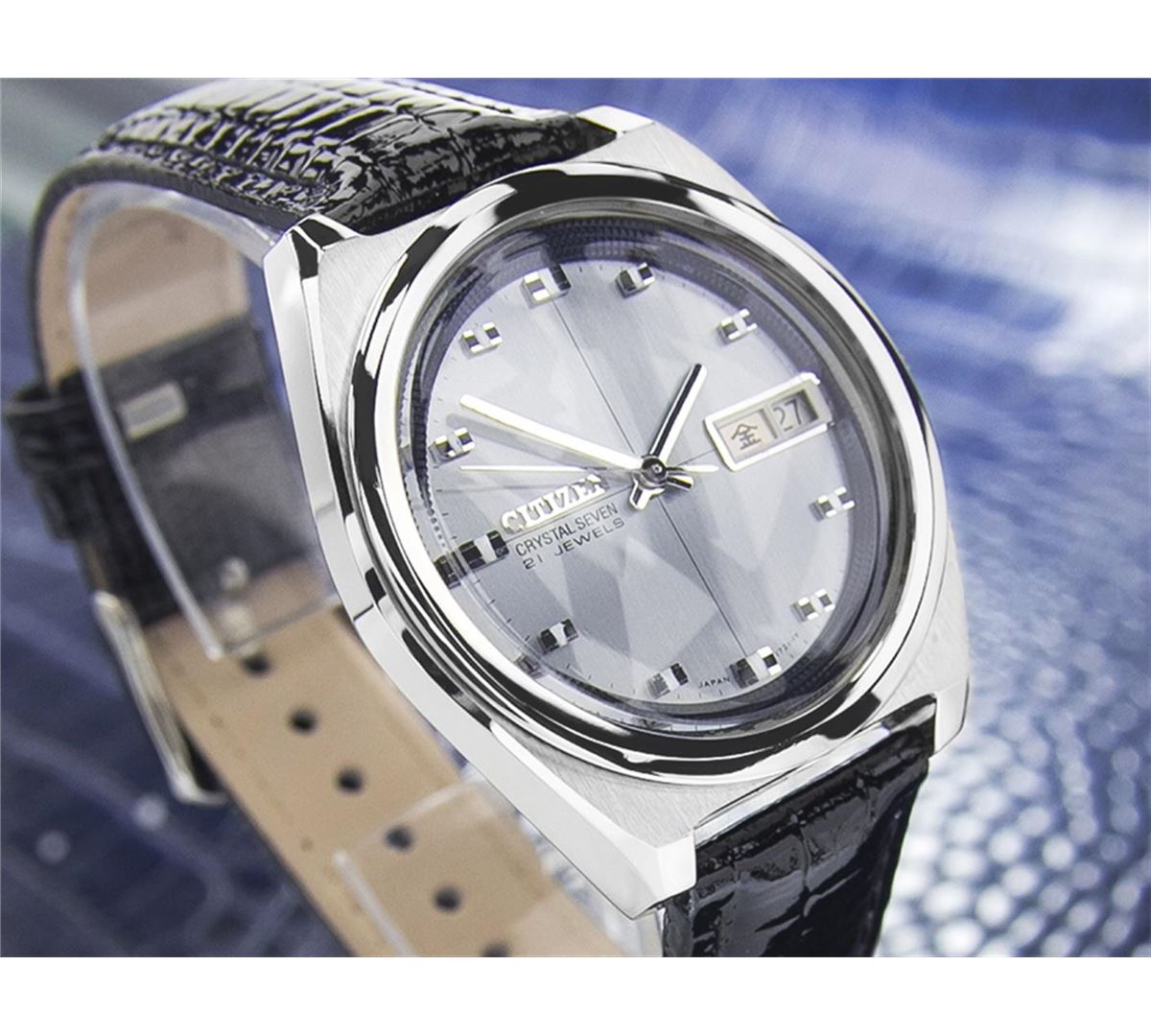 Citizen Crystal Seven Stainless Steel Automatic Watch. Brand: CITIZEN. Model: CRYSTAL 7. Movement: Automatic. Case Material: Stainless Steel. Crystal: MINERAL GLASS. Case Size: 43X37. Band: NEW LEATHER BAND .