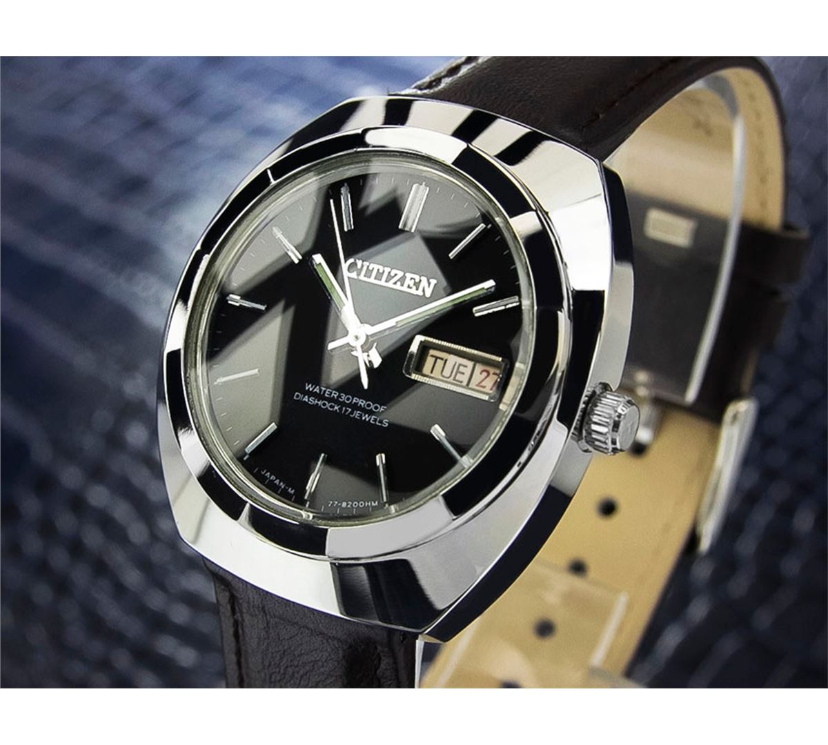 Citizen Diashock Stainless Steel Manual Watch. Brand: CITIZEN. Model: DIASHOCK. Movement: Manual. Case Material: Stainless Steel. Crystal: MINERAL GLASS. Case Size: 38X36. Band: NEW LEATHER BAND .