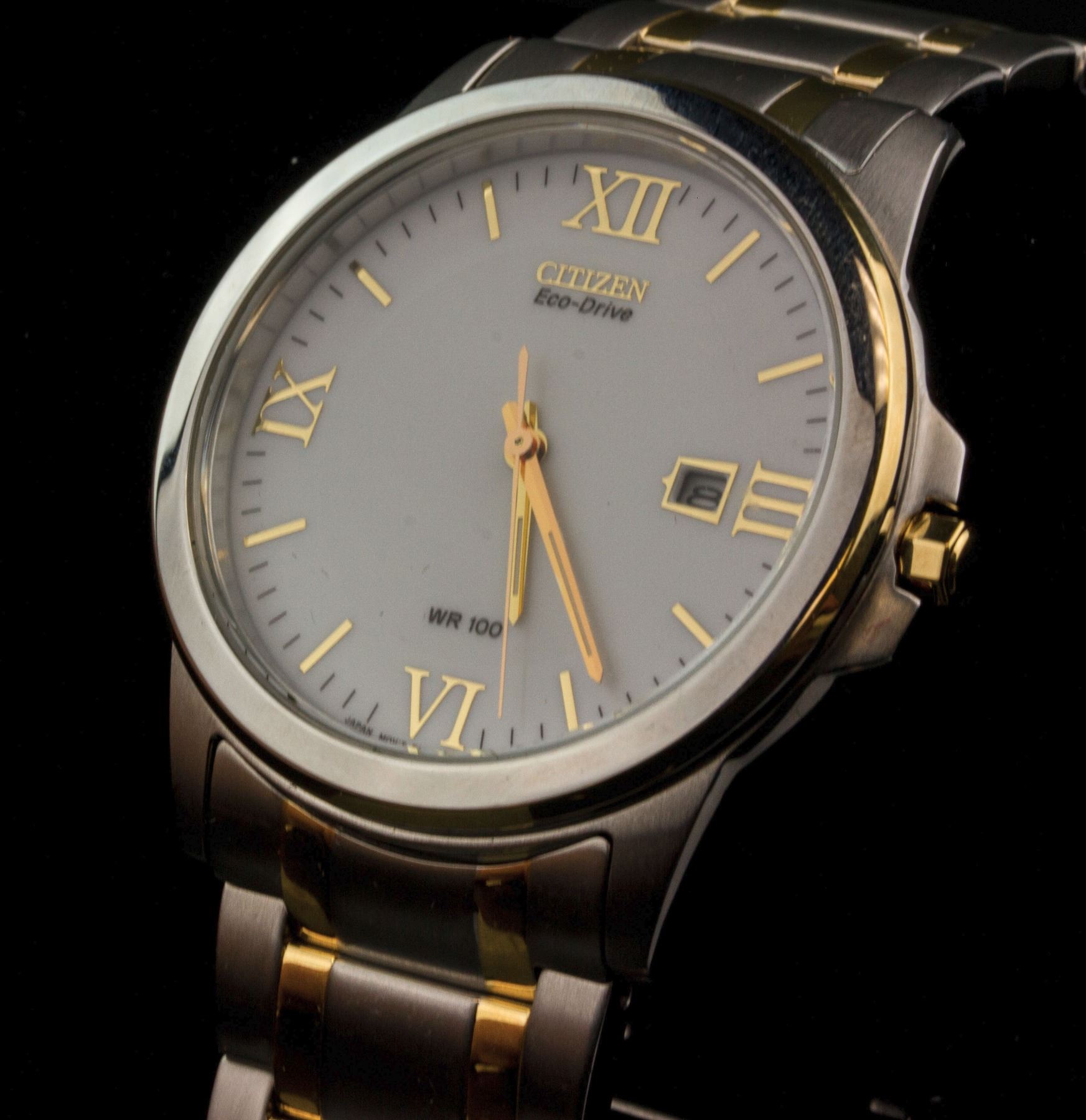 Citizen Eco-Drive men's wrist watch; model GN-4W-s; water resistant 100m; retail price $325; D: 3.8 cm, 132 grams