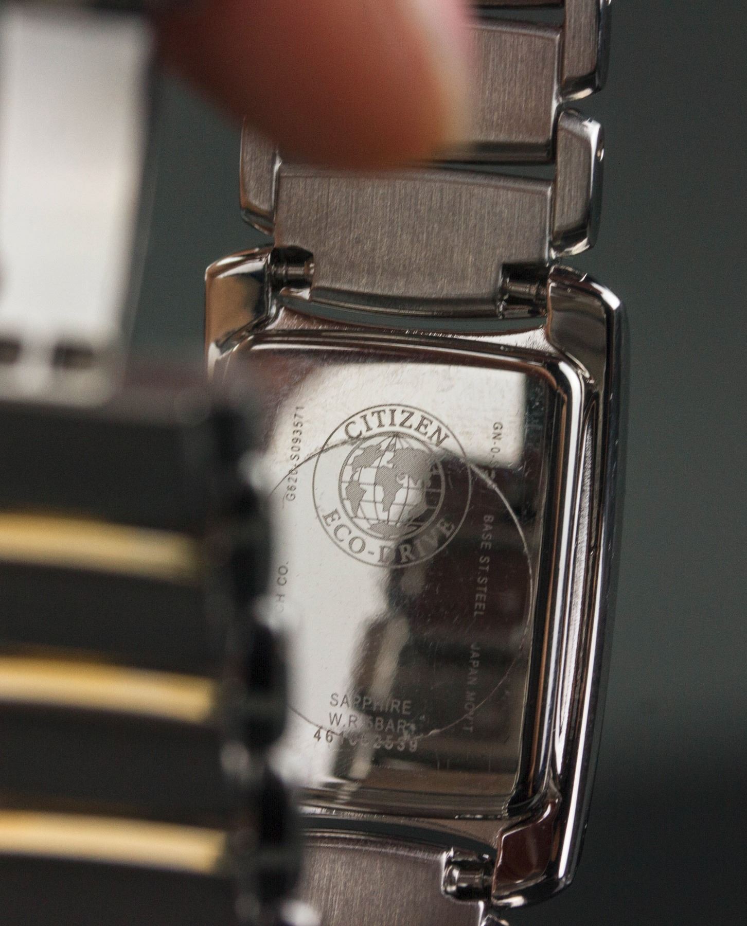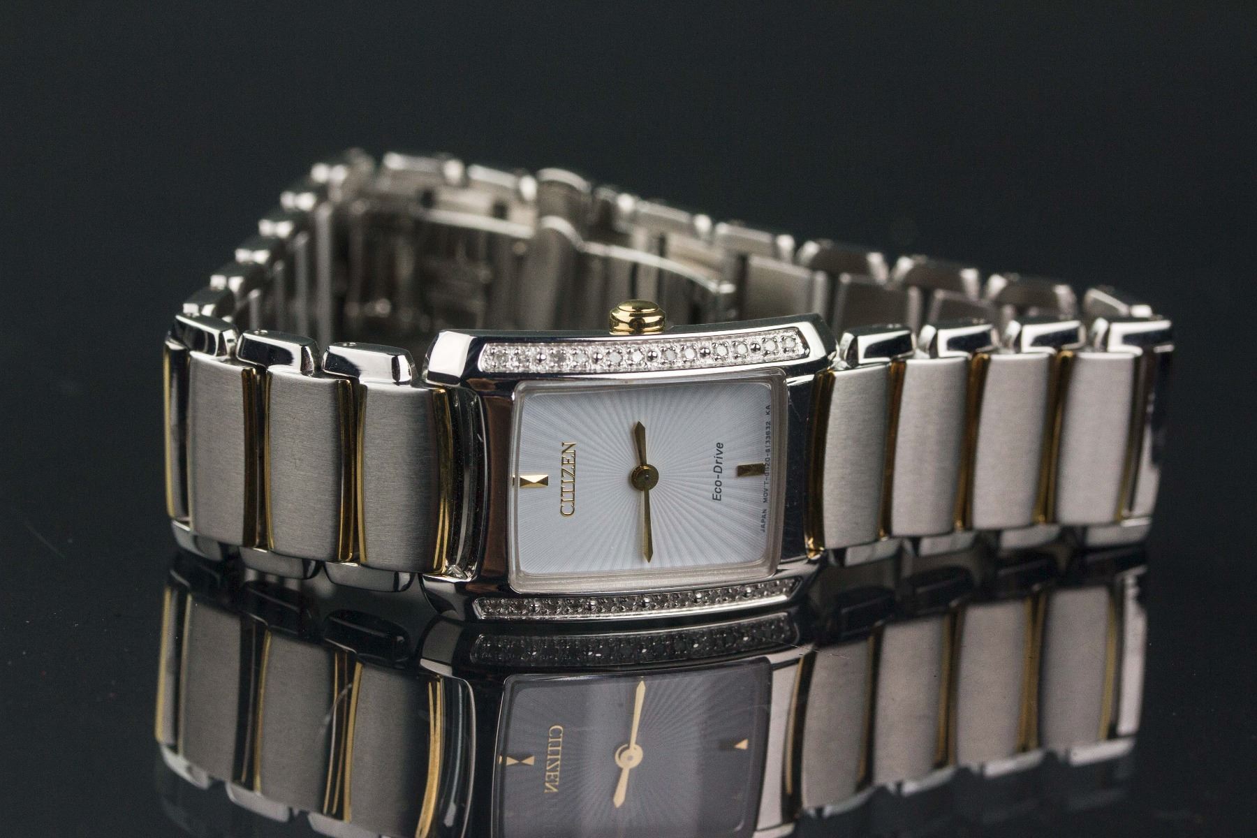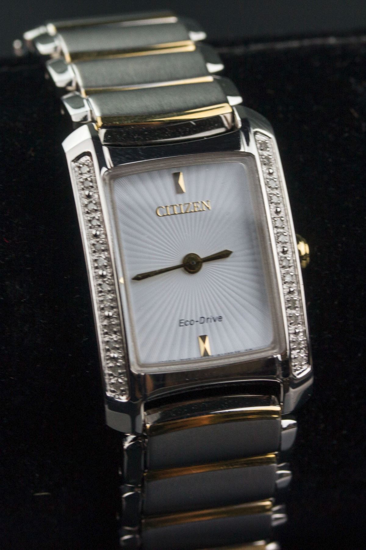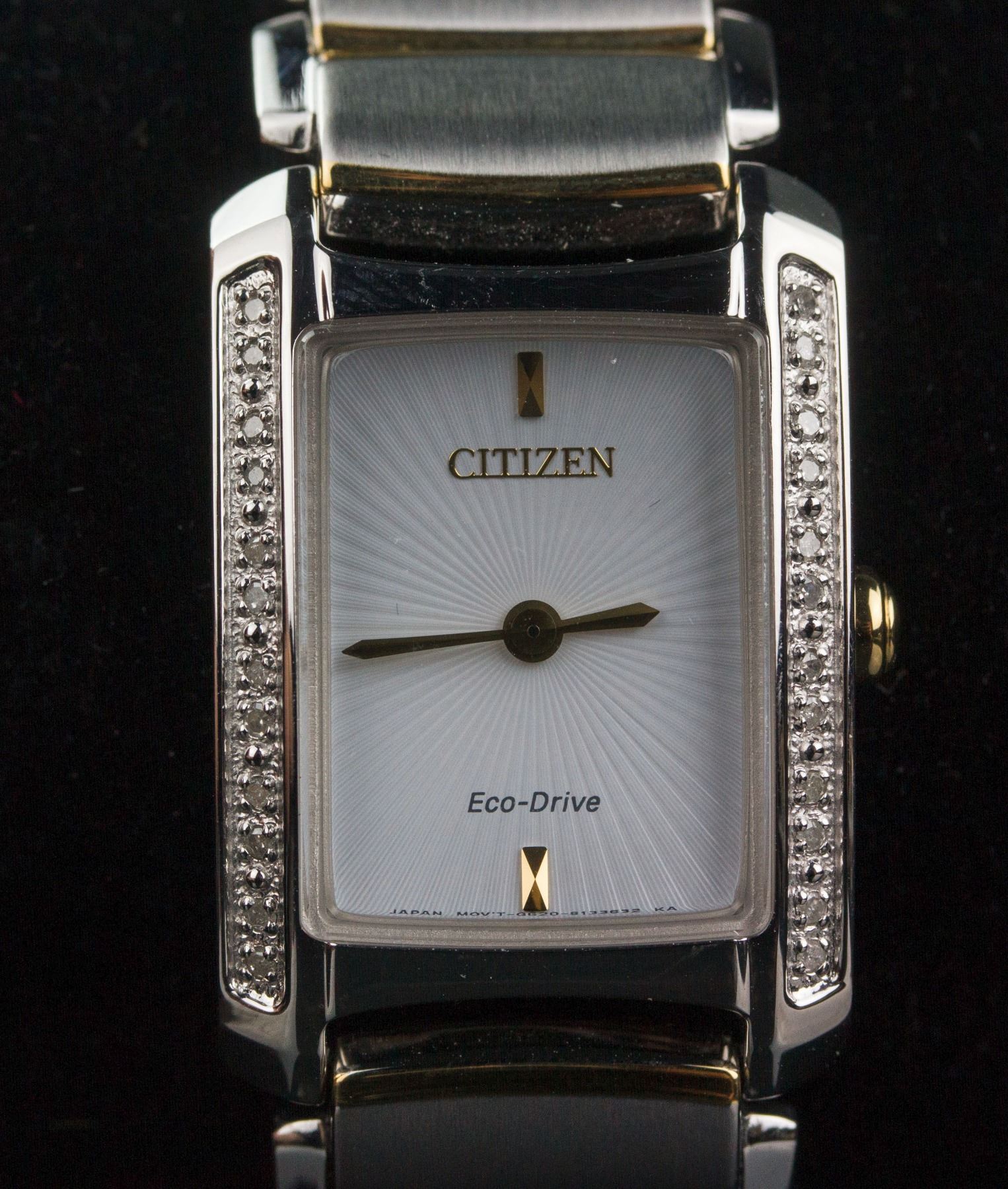 Citizen Eco-Drive women's wrist watch; model GN-0.S-9; retail price $525; 2.5 cm x 2 cm, 76 grams