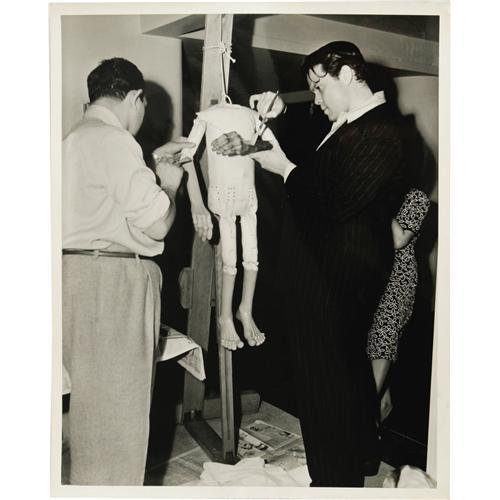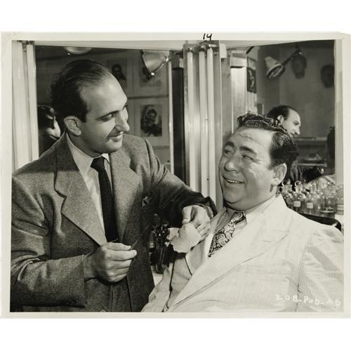 <B>"Citizen Kane" Make-up Man Maurice Seiderman Archive.</B></I> Maurice Seiderman (1907-1989) was a virtuoso make-up artist, one of the most brilliantly creative in Hollywood history. A Russian immigrant, he achieved legendary distinction creating and applying the various age make-ups for Orson Welles in the 1941 cinema milestone <I>Citizen Kane.</B></I> When Welles demanded Seiderman receive onscreen credit, the head of makeup at RKO demanded only his own name go on the screen -- and as such, Welles insisted no make-up credit be shown at all. Welles instead took out a trade advertisement, thanking both those who did and did not receive <I>Citizen Kane</B></I> screen credit, paying tribute "...particularly to Maurice Seiderman, the best make-up man in the world." This remarkable scrapbook from Seiderman's estate features nine original shots of Welles on the <I>Citizen Kane</B></I> set, wearing the various age make-ups, with Seiderman's pencil notes on the verso. The album also includes a shot of Joseph Cotten in his old age make-up from <I>Citizen Kane,</B></I> two pages from <I>Movie Life</B></I> magazine showing Seiderman's make-up for Raymond Massey <I> Abe Lincoln in Illinois</B></I> (1940), a copy of Norman Gambill's interview with Seiderman titled "Making Up Kane," a page from a fan magazine with a "Master of Make-up" heading showing Welles in the various Kane make-ups, several shots of Seiderman transforming an actress into a crone, a series of shots of Seiderman making up an RKO starlet, several pictures of Seiderman applying Alan Carney's zombie make-up for <I>Zombies on Broadway</B></I> (1945), several shots of Welles in later film and tv productions (including three wonderful portraits of Welles in bald head and bristly mustache make-up for an unknown film), and a photocopy of the <I>Citizen Kane</B></I> trade ad which thanked Seiderman. Finally, there's a receipt from Western Costume Company, dated August 20, 1957, regarding Welles' never-completed film of <I>Don Quixote.</B></I> Maurice Seiderman's wide-ranging work included such later Welles films as <I>The Magnificent Ambersons</B></I> and <I>Touch of Evil,</B></I> the Val Lewton horror films at RKO, and even the infamous 1955 Bela Lugosi/Ed Wood collaboration <I>Bride of the Monster,</B></I> as well as work for the Broadway stage. Yet <I>Citizen Kane</B></I> is Maurice Seiderman's true legacy. This wonderful album from a major talent of this film is a dynamic memento from what many still regard as the greatest movie of all time. In overall Very Fine condition.<BR><BR><b>Shipping:</b> Flat Material, Small (<a target="_blank" href="http://www.heritageauctions.com/common/shipping.php">view shipping information</a>)