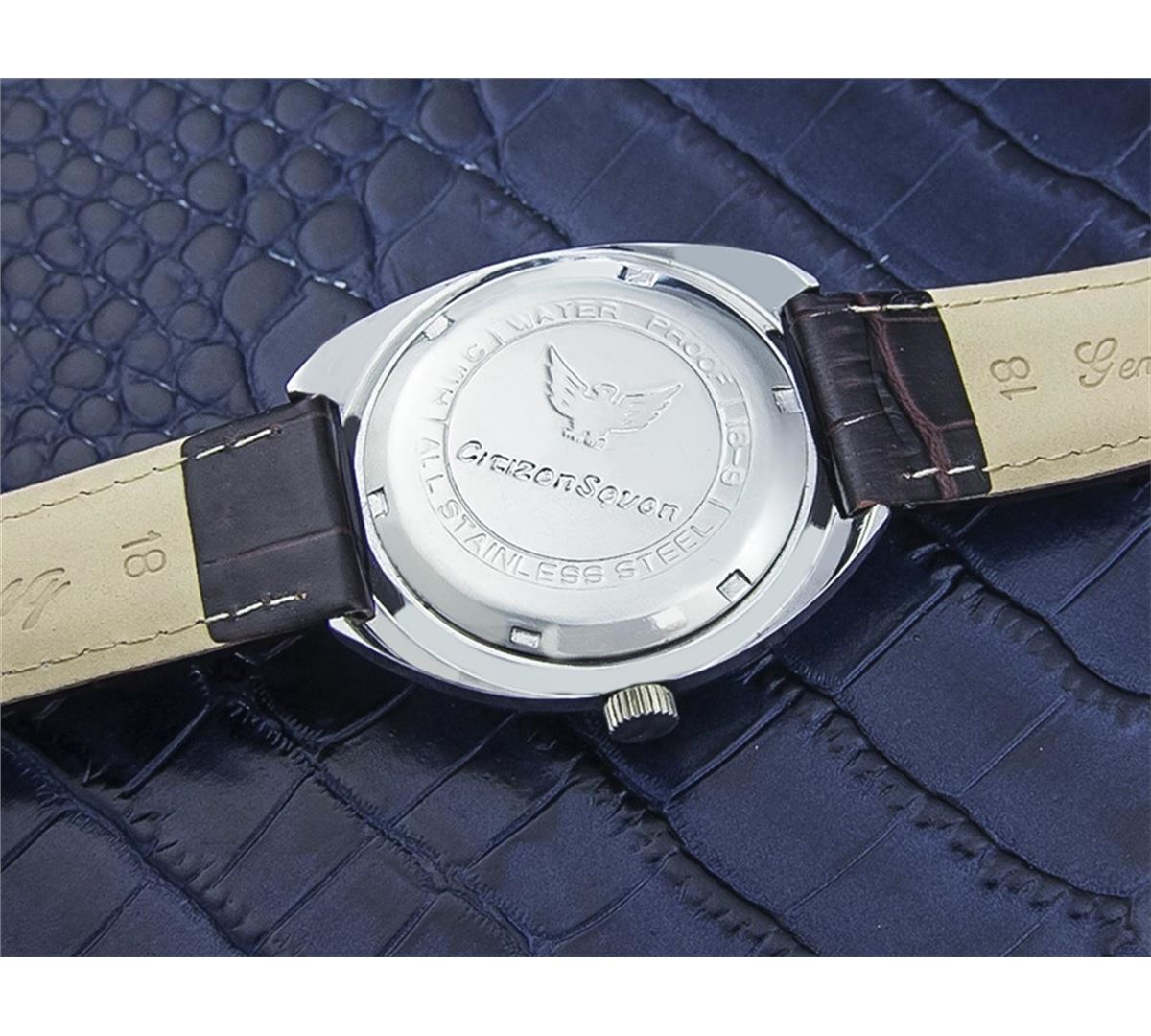 Citizen Reference 18-9 Stainless Steel Manual Watch. Brand: CITIZEN. Model: REFERENCE 18-9. Movement: Manual. Case Material: Stainless Steel. Crystal: ACRYLIC. Case Size: 40X37. Band: NEW LEATHER BAND GENERIC.