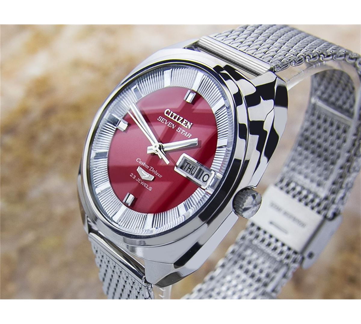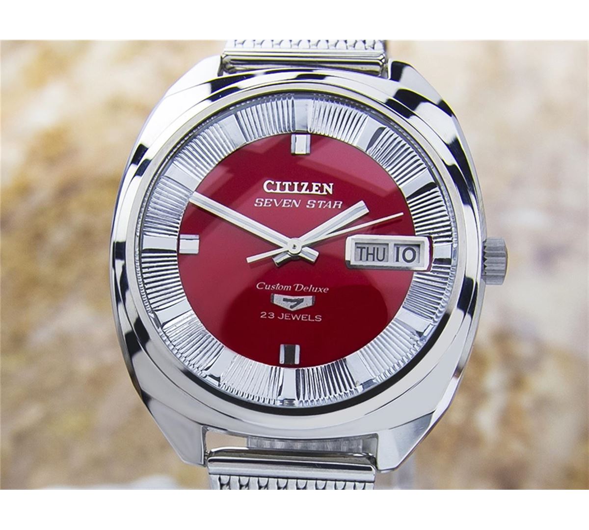 Citizen Seven Star Day Date Stainless Steel Automatic Watch. Brand: CITIZEN. Model: SEVEN STAR. Movement: Automatic. Case Material: Stainless Steel. Crystal: MINERAL GLASS. Case Size: 46X40. Band: Stainless Steel BRACELET.