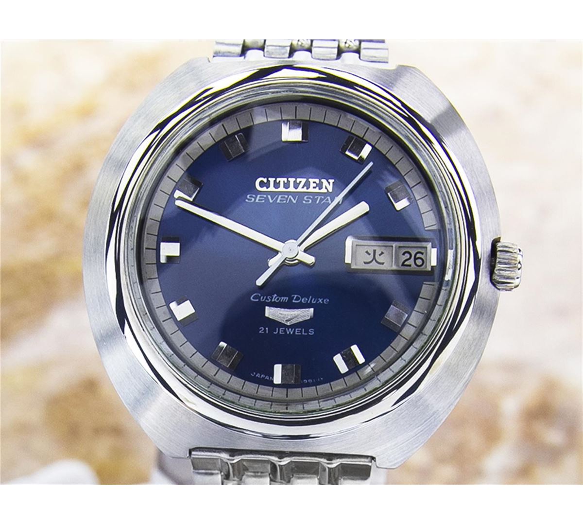 Citizen Seven Star Stainless Steel Automatic Watch. Brand: CITIZEN . Model: SEVEN STAR. Movement: Automatic. Case Material: Stainless Steel. Crystal: MINERAL GLASS. Case Size: 41X40. Band: GENERIC Stainless Steel BRACELET.