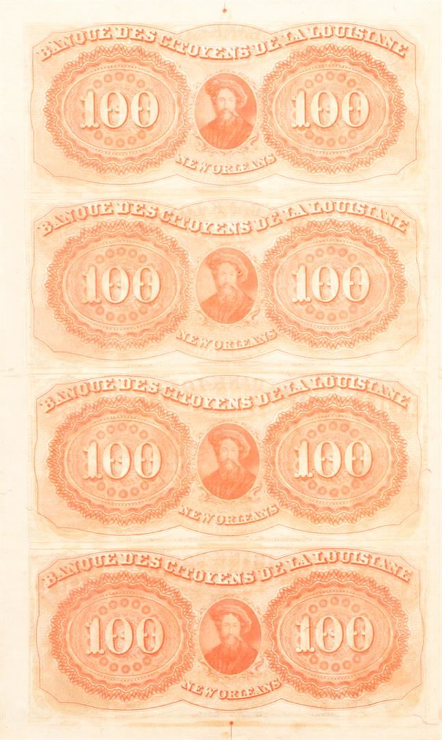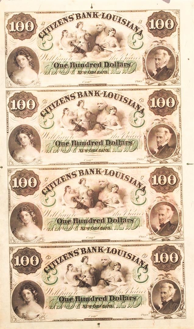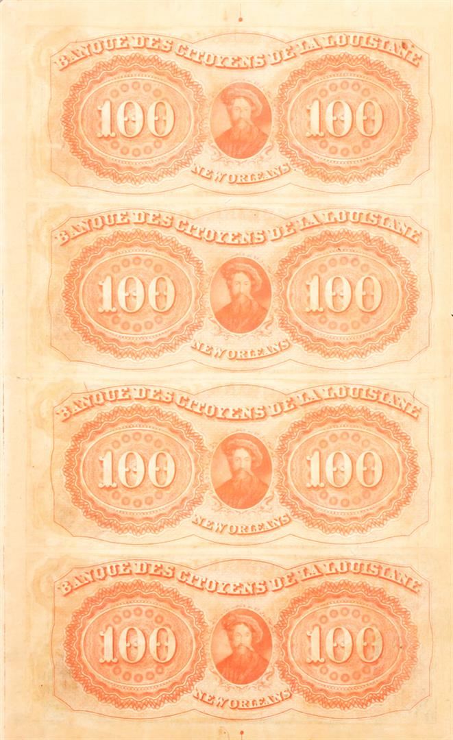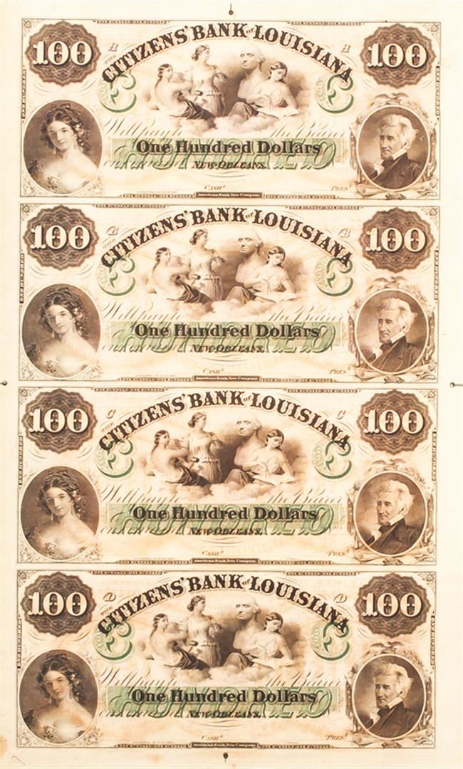 Lot of three Citizens Bank New Orleans $100 Uncut Notes.