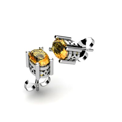 Citrine 0.90ctw Earring 14kt White Gold **|**|** Mainstone: Citrine ; Total CTW: 0.90 ; Shape: Oval ; Gem Size: 6x4mm ; Metal / Purity: 14kt White Gold ; Gem Count 1: 2 Oval Cut ; MSRP: $700