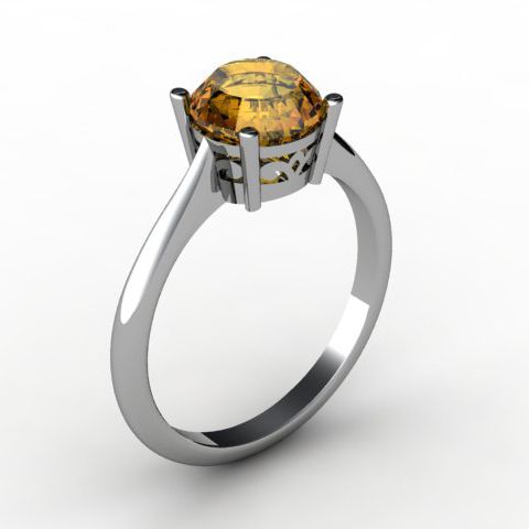 Citrine 1.30 ctw Ring14kt White Gold **|**|** Mainstone: Citrine ; CTW: 1.30 ; Shape: Round ; Gem Size: 7mm ; Metal / Purity: 14kt White Gold ; MSRP: $1000