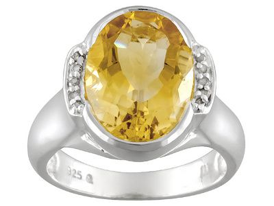 Citrine 6.00ct With White Diamond .06ctw Sterling Silver Ring URH090
