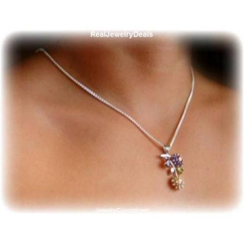 Solid Sterling Silver Genuine Citrine Amethyst Garnet Necklace