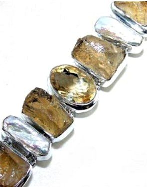 Silver & Citrine & Biwa Pearl Bracelet. Allow 6 to 8 weeks for delivery.