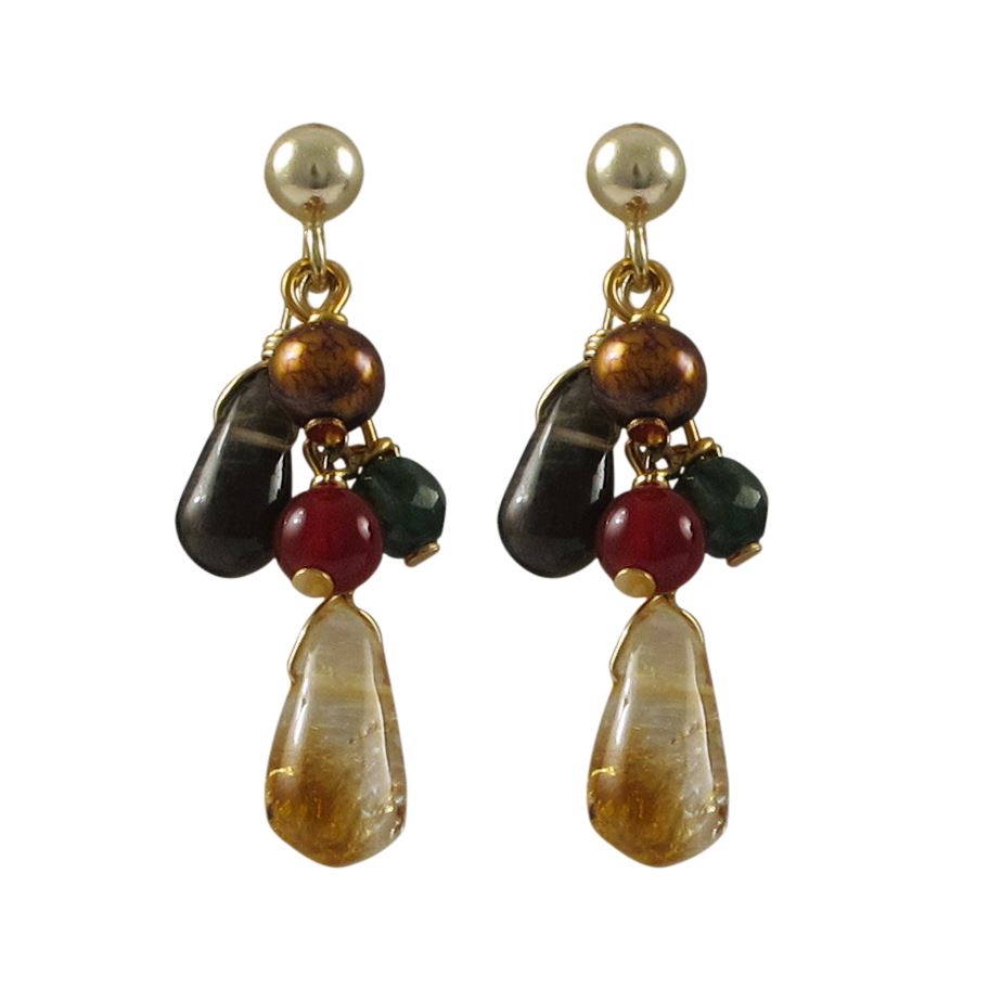 Citrine Combination Semi Precious Stones On Gold Filled Post Earrings, 1.18"
