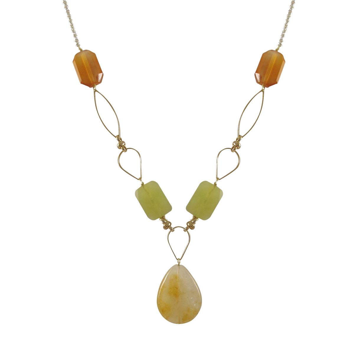 Citrine Combination Semi Precious Stones On Gold Plated Brass Chain "Y" Necklace, 18" 2"