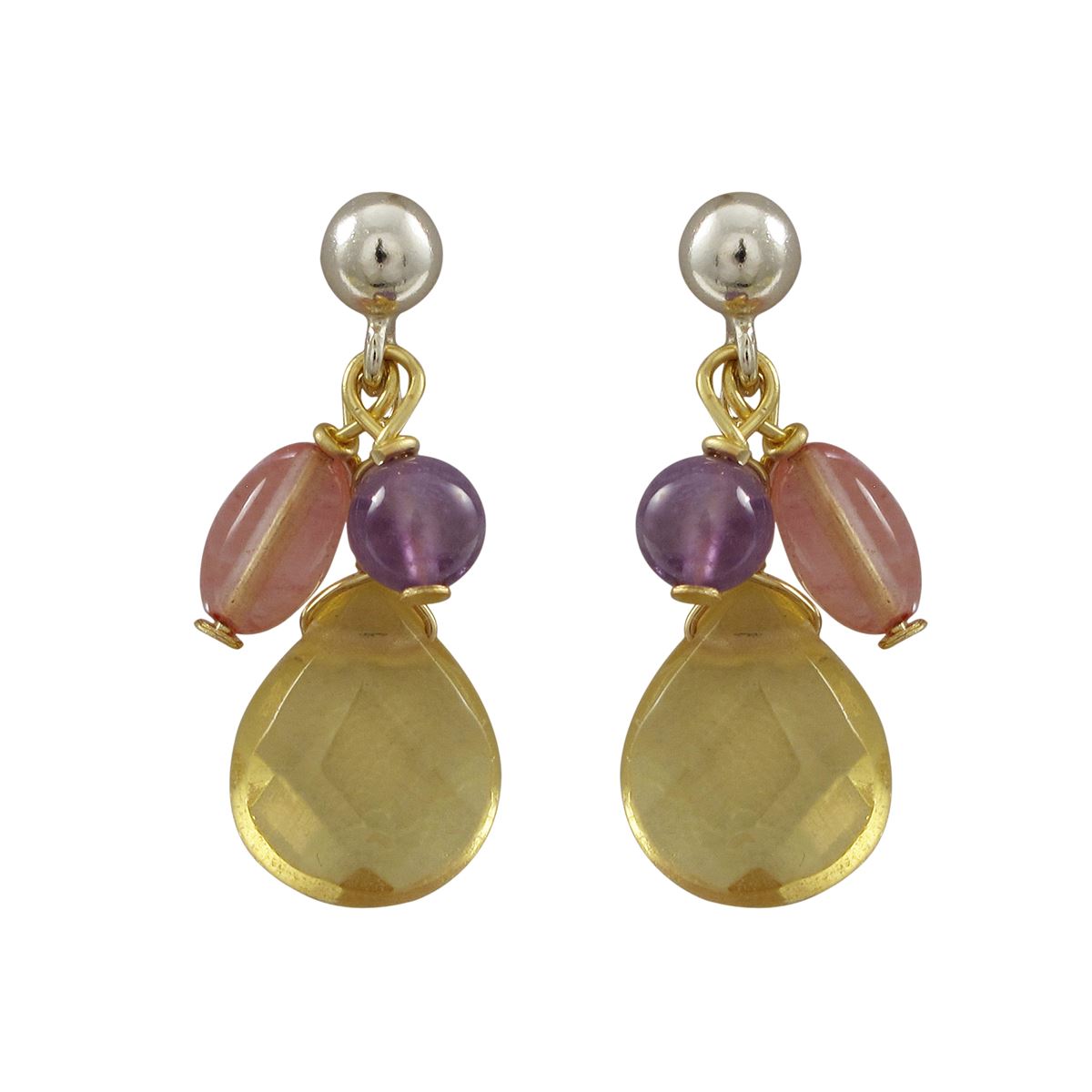 Citrine Combination Semi Precious Stones On Gold Plated Sterling Silver Post Earrings-0.87"