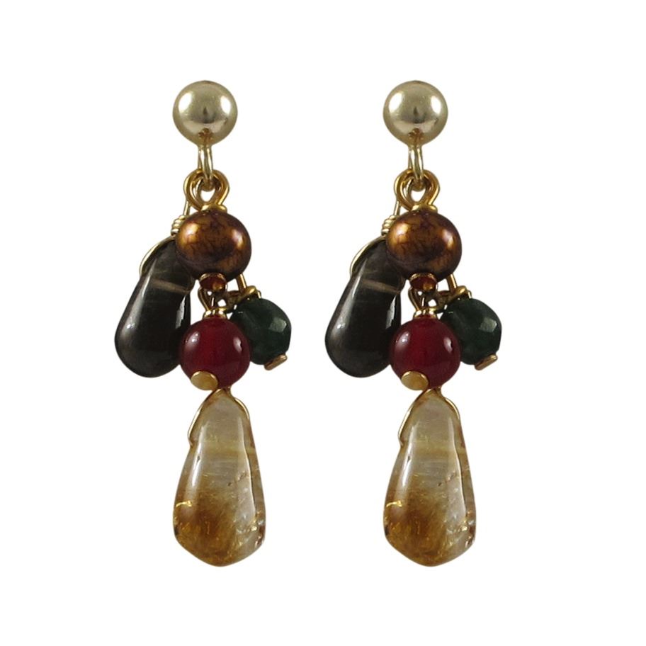 Citrine Combination Semi Precious Stones On Gold Plated Sterling Silver Post Earrings, 1.18"