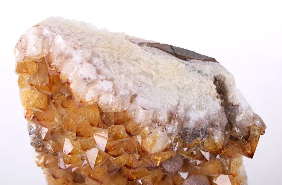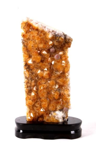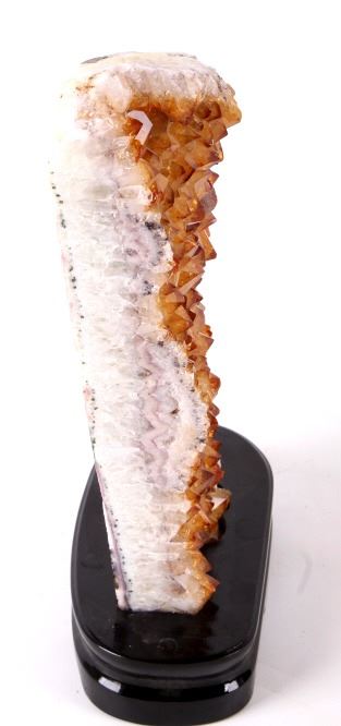 This is a citrine geode crystal formation with a custom made wood stand. This beautiful crystal is one of the most popular quartzes in the world. The geode shows large crystals with golden yellow citrine crystal. The citrine geode is in good condition and measures 11.25" x 6.5" including stand.
