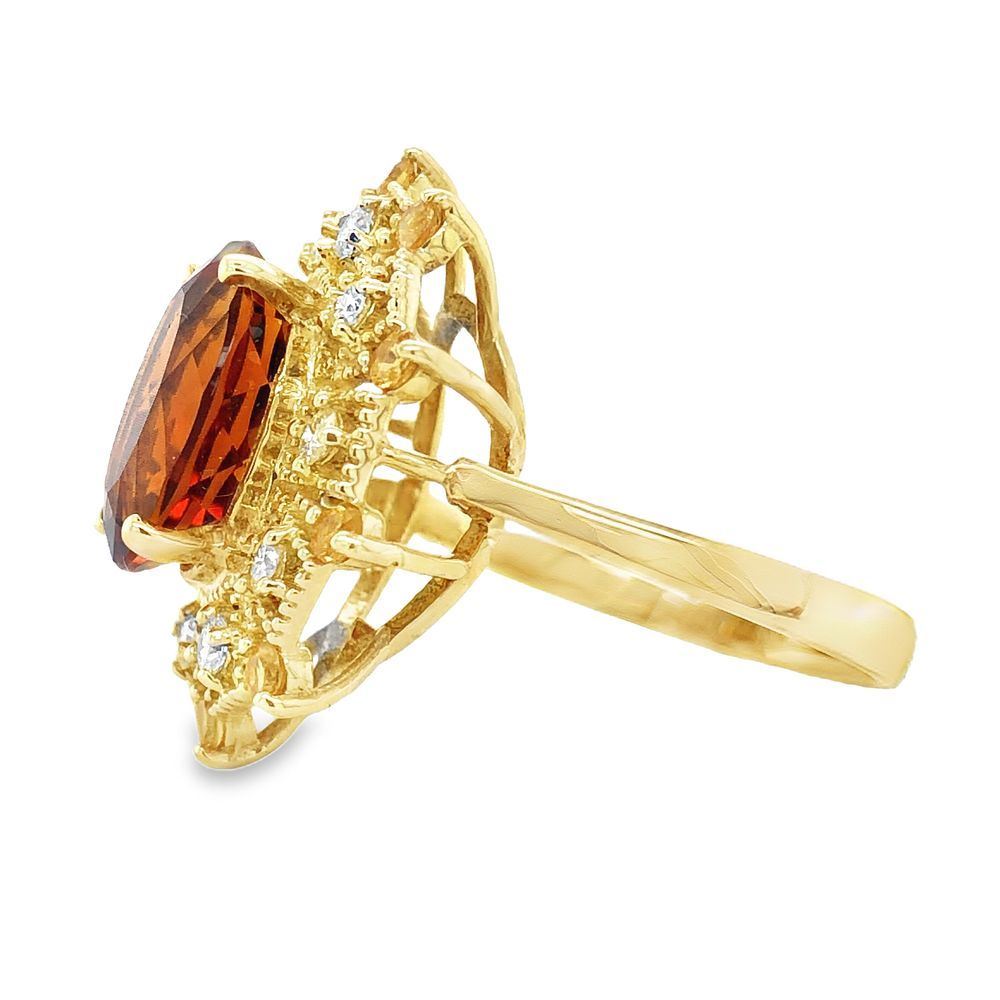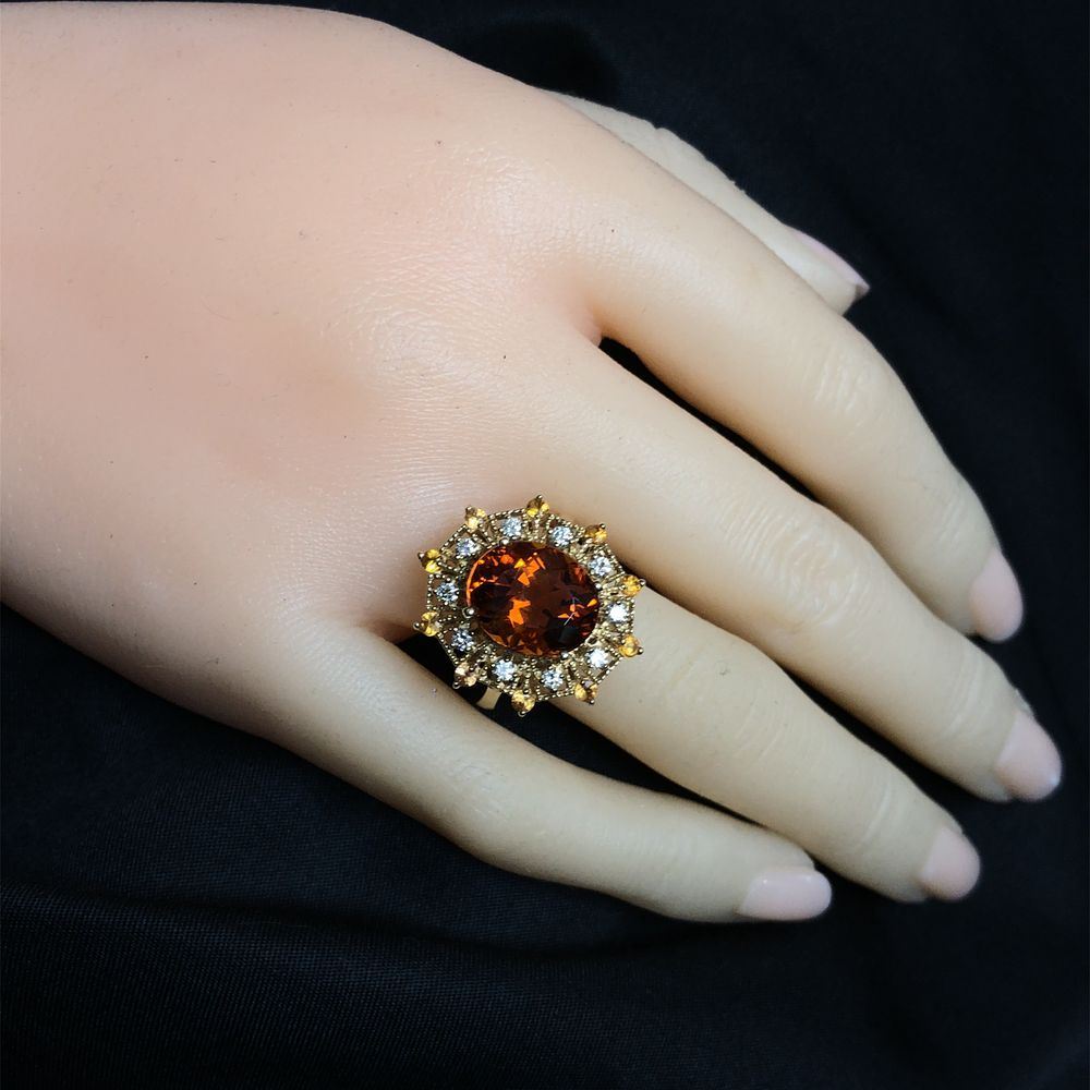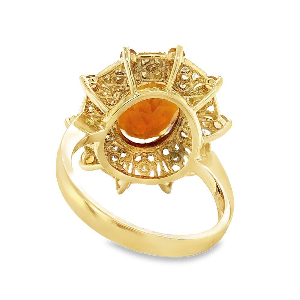 DESCRIPTION DETAIL: This beautiful ring features a large oval shaped Citrine surrounded by a halo of round brilliant cut natural Diamonds and Yellow Sapphires.
