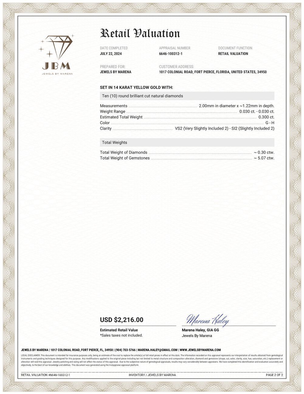 TOTAL GEMSTONE WEIGHT: Approximately 5.37 Carats Total Weight