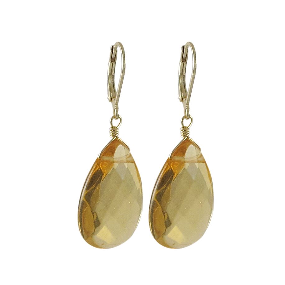 Citrine Semi Precious Stone On Gold Tone Sterling Silver Lever Back Earrings -1.87" (Approximately)