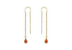 Hanging loosely at the bottom of a strand is a sunny hued drop shaped citrine. Made in 14K yellow gold these earrings have a total gem weight (TGW) of 2.00 ct. A U shape bridge is made for added comfort. Adjust the chain to a length you desire.