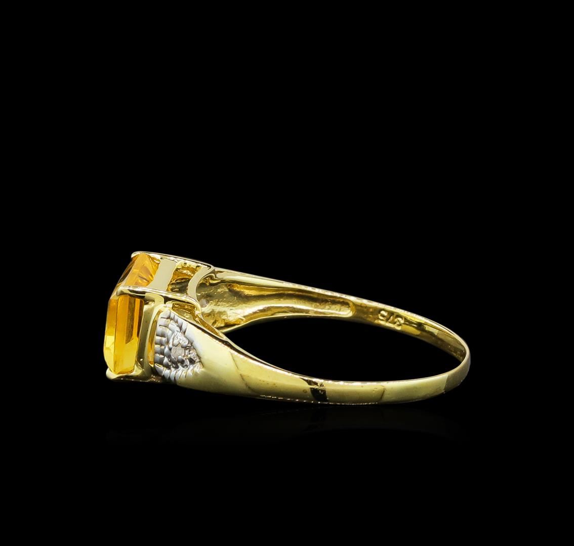 Citrine and Diamond Ring - 9KT Yellow Gold. Total Weight: 1.4 grams.