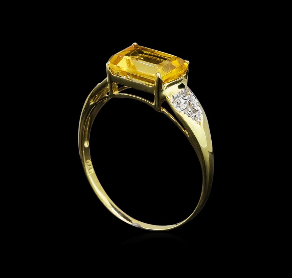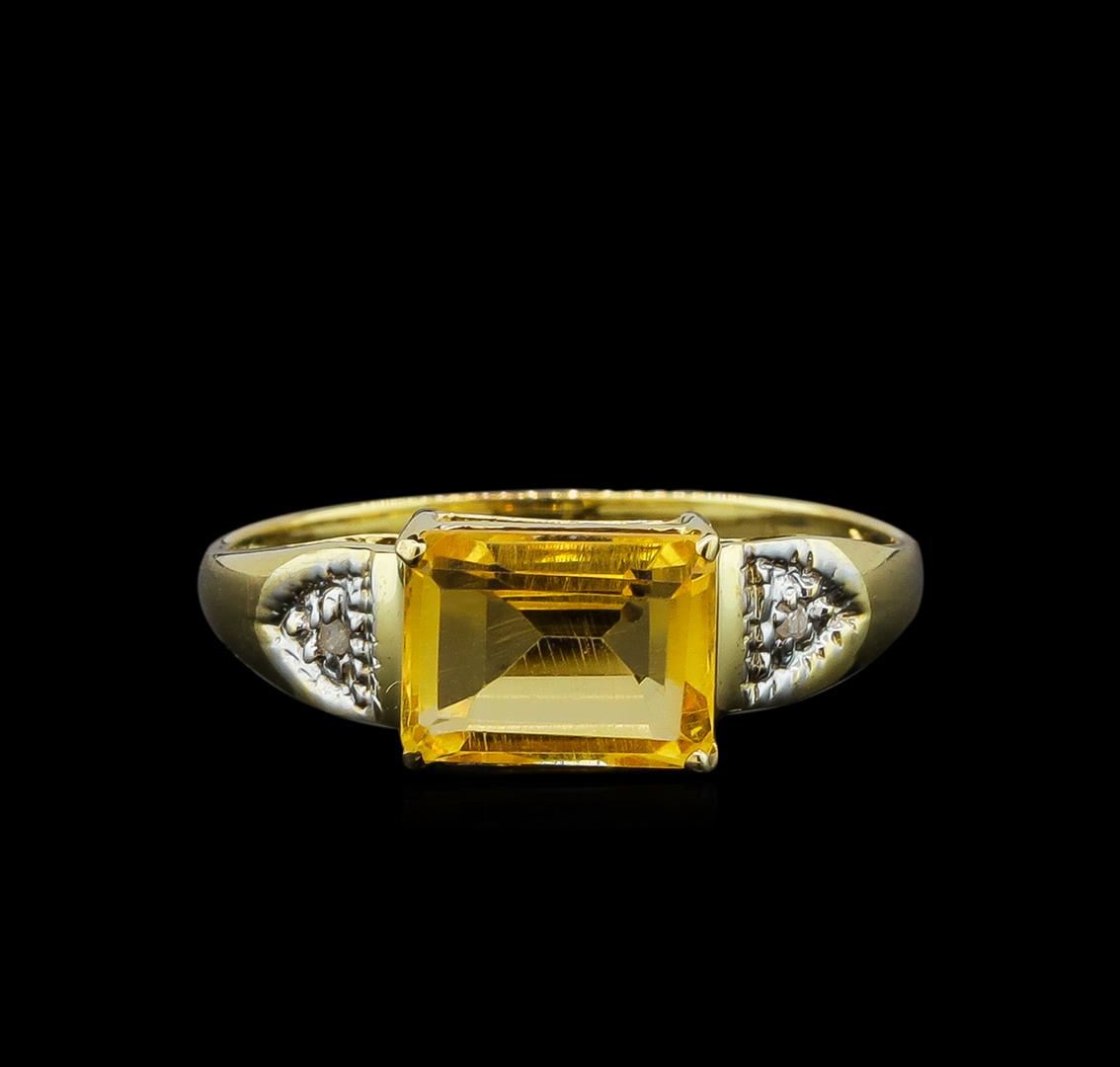 Citrine and Diamond Ring - 9KT Yellow Gold. Total Weight: 1.4 grams.