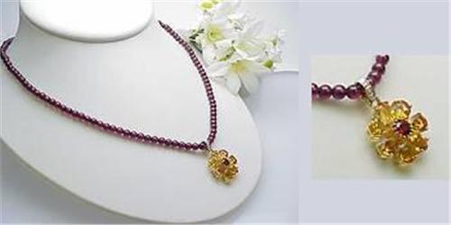 Citrine and garnet pendant with diamond bail on garnet bead necklace