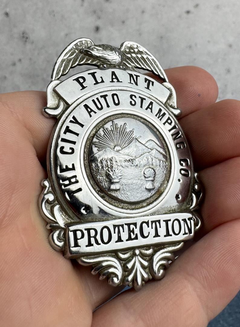 2 3/4" by 1 3/4". The City Auto Stamping Plant was located in Toledo, Ohio.