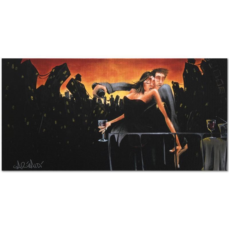 Combining his passions for music and art, David Garibaldi creates visual poetry. "City Lights & Love" is a limited edition giclee on stretched canvas, E numbered and bearing the artist's authorized signature. This piece comes gallery wrapped. Includes Certificate of Authenticity! Measures approx. 48" x 24" (image).