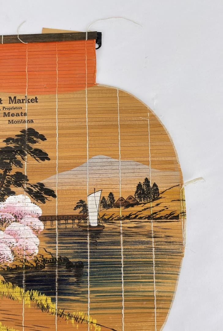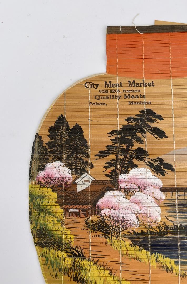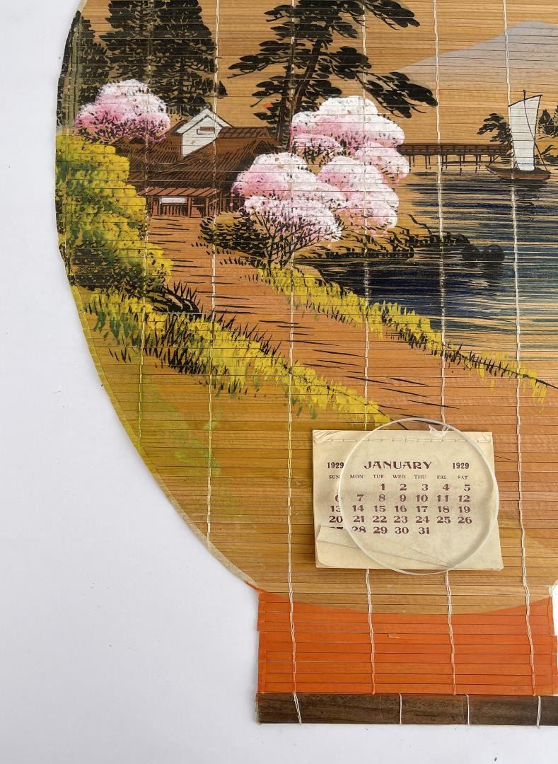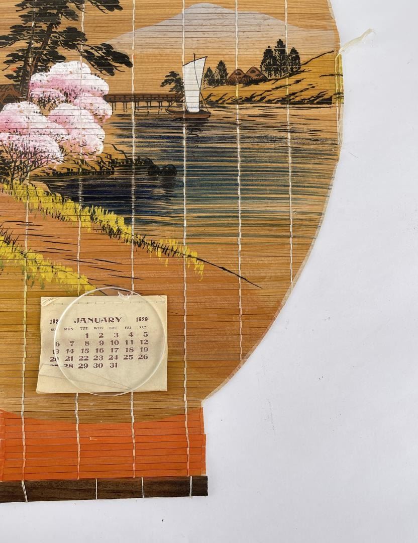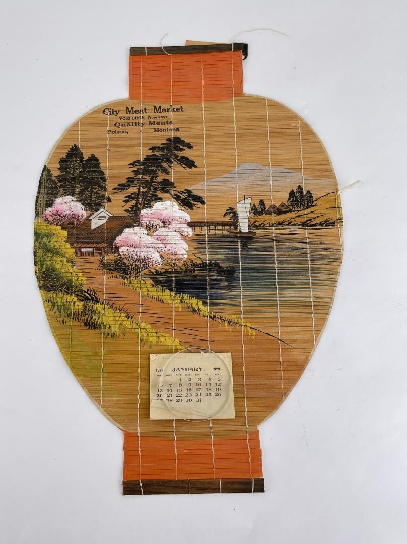 Nice old rolled sign. Calendar pad intact. Form of a paper lantern. 11" by 17.25".