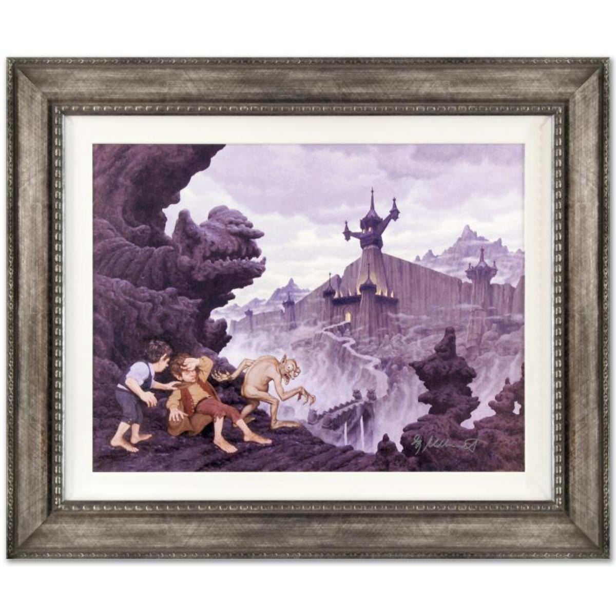 Known world wide for their fantasy and science fiction illustrations, identical twin brothers Greg and Tim Hildebrandt created an abundance of fascinating artwork, most notably their illustration work for J.R.R. Tolkien's 'The Hobbit' and 'Lord of the Rings'. "City Of The Ringwraiths", originally created in the 1970's for Ballantine Books, is a limited edition giclee on canvas, numbered and hand signed by Greg Hildebrandt! This piece comes custom framed using acid free materials and is ready to hang. Includes Certificate of Authenticity! Measures approx. 39" x 31.5" (with frame), 27.5" x 20.5" (image). Reference #: 189905