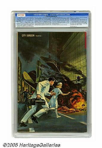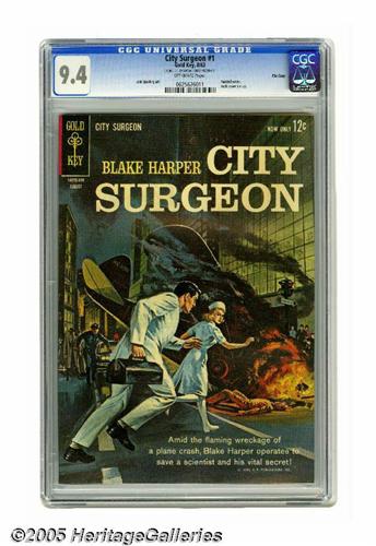 <B>City Surgeon #1 File Copy (Gold Key, 1963) CGC NM 9.4 Off-white pages.</B></I> Jack Sparling art. Painted cover; back cover pin-up. Overstreet 2005 NM- 9.2 value = $48. CGC census 7/05: 2 in 9.4, none higher. <I>From the Random House Archives.</B></I>