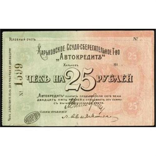 <style type="text/css"> body, td, th { font-family: Arial, Helvetica, sans-serif; font-size: 12px; color: #482424; margin: 0px; padding: 0px; } #header { background-image: url(http://www.bowersandmerena.com/ebay/images/template_v3_01.gif); clear: both; background-color: #590303; border-top-width: 2px; border-top-style: solid; border-top-color: #B38C4F; } #header #header_wrapper { height: 75px; clear: both; width: 800px; margin-right: auto; margin-left: auto; background-image: url(http://www.bowersandmerena.com/ebay/images/template_v3_03.gif); background-repeat: no-repeat; background-position: right; color: #F3EDCC; } #header #header_wrapper #header_logo { float: left; height: 75px; width: 444px; background-image: url(http://www.bowersandmerena.com/ebay/images/template_v3_02.gif); background-repeat: no-repeat; font-size: 10px; text-transform: capitalize; color: #B38C4F; } #header #header_wrapper #header_right { float: left; height: 75px; width: 356px; text-align: right; } #header #header_wrapper #header_right #headerLoginBtn { margin-bottom: 30px; } #header #header_wrapper #header_right input#txtSearch { color: #B49056; border: 1px solid #B49056; width: 175px; padding-top: 3px; padding-right: 3px; padding-bottom: 4px; padding-left: 3px; } #nav { height: 37px; background-image: url(http://www.bowersandmerena.com/ebay/images/template_v3_05.gif); clear: both; } #nav #nav_wrapper { height: 35px; width: 800px; margin-right: auto; margin-left: auto; border-left-width: 1px; border-left-style: solid; border-left-color: #B38C4F; } #nav #nav_wrapper a { padding-right: 15px; padding-left: 15px; border-right-width: 1px; border-right-style: solid; border-right-color: #B38C4F; height: 25px; padding-top: 10px; display: block; float: left; text-decoration: none; font-weight: bold; color: #5D0303; } #nav #nav_wrapper a:hover { color: #B38C4F; } #nav #nav_wrapper #search { float: right; padding-top: 7px; } #nav #nav_wrapper #search #txtSearch { font-family: Arial, Helvetica, sans-serif; font-size: 10px; text-transform: uppercase; color: #D2AE75; border: 1px solid #B38C4F; padding: 3px; } #content_bgd { background-image: url(http://www.bowersandmerena.com/ebay/images/template_v3_09.gif); background-repeat: repeat-y; background-position: center; padding-top: 15px; padding-bottom: 15px; background-color: #FBFBDB; } #content_wrapper { clear: both; height: auto; width: 800px; margin-right: auto; margin-left: auto; } .LotDetailWhite { line-height:normal; font-size:13px; font-family: arial,helvetica,sans-serif; color: White; font-weight: bold; } .LotDetailInformation { line-height:normal; font-size: 13px; font-family: arial,helvetica,sans-serif; } .LotDetailMessage { line-height:normal; font-size: 13px; font-family: arial,helvetica,sans-serif; color: red; } } tr.HeaderAuctionTitle td { color: #000000; font-weight: bold; padding: 2px; background-image: url(http://www.bowersandmerena.com/ebay/images/template_v3_05.gif); background-repeat: repeat-x; border-bottom-width: 1px; border-bottom-style: solid; border-bottom-color: #B38C4F; } table.AuctionSummary a, table.AuctionSummary a:link, table.AuctionSummary a:visited { color: #0000FF; text-decoration: none; } } td.tableHeaderLeft { border-left-width: 1px; border-left-style: solid; border-left-color: #B38C4F; } td.tableHeaderRight { border-right-width: 1px; border-right-style: solid; border-right-color: #B38C4F; } td.tableCellMiddle { border-left-width: 1px; border-left-style: solid; border-left-color: #B38C4F; border-right-width: 1px; border-right-style: solid; border-right-color: #B38C4F; padding: 5px; } tr.footer td { border-top-width: 1px; border-top-style: solid; border-top-color: #B38C4F; } </style> </head> <body> <div id="header"> <div id="header_wrapper"> <div id="header_logo"> </div> <div id="header_right"> </div> </div> </div> <div id="nav"> <div id="nav_wrapper"> <a href="http://www.bowersandmerena.com">Our eBayLive Auctions</a> <a href="#PaymentInfo">Payment Information</a> <a href="#ShippingInfo">Shipping Information</a> <a href="#About">About Bowers and Merena</a> </div> </div> <div id="content_bgd"> <div id="content_wrapper"> <table width="100%" border="0" cellpadding="5" cellspacing="0" class="AuctionSummary"> <tbody> <tr class="HeaderAuctionTitle" style="height: 25px;"> <td align="left" class="tableHeaderLeft" > </td> <td align="center" class="tableHeaderRight"> <span style="font-size: large;">Lot #2064. Ukraine & Crimea. City of Kharkov "Autocredit" Scrip Note.</span> </td> </tr> <tr> <td colspan="3" class="tableCellMiddle"> 191-, 25 Rubles, Kard.P.66 #12.5, Unissued, XF. Scarce scrip note.
