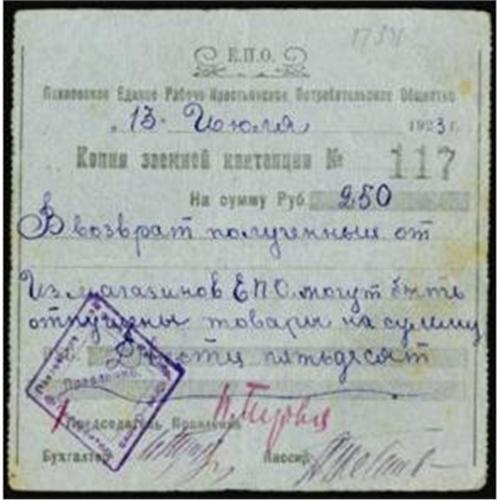 <style type="text/css"> body, td, th { font-family: Arial, Helvetica, sans-serif; font-size: 12px; color: #482424; margin: 0px; padding: 0px; } #header { background-image: url(http://www.bowersandmerena.com/ebay/images/template_v3_01.gif); clear: both; background-color: #590303; border-top-width: 2px; border-top-style: solid; border-top-color: #B38C4F; } #header #header_wrapper { height: 75px; clear: both; width: 800px; margin-right: auto; margin-left: auto; background-image: url(http://www.bowersandmerena.com/ebay/images/template_v3_03.gif); background-repeat: no-repeat; background-position: right; color: #F3EDCC; } #header #header_wrapper #header_logo { float: left; height: 75px; width: 444px; background-image: url(http://www.bowersandmerena.com/ebay/images/template_v3_02.gif); background-repeat: no-repeat; font-size: 10px; text-transform: capitalize; color: #B38C4F; } #header #header_wrapper #header_right { float: left; height: 75px; width: 356px; text-align: right; } #header #header_wrapper #header_right #headerLoginBtn { margin-bottom: 30px; } #header #header_wrapper #header_right input#txtSearch { color: #B49056; border: 1px solid #B49056; width: 175px; padding-top: 3px; padding-right: 3px; padding-bottom: 4px; padding-left: 3px; } #nav { height: 37px; background-image: url(http://www.bowersandmerena.com/ebay/images/template_v3_05.gif); clear: both; } #nav #nav_wrapper { height: 35px; width: 800px; margin-right: auto; margin-left: auto; border-left-width: 1px; border-left-style: solid; border-left-color: #B38C4F; } #nav #nav_wrapper a { padding-right: 15px; padding-left: 15px; border-right-width: 1px; border-right-style: solid; border-right-color: #B38C4F; height: 25px; padding-top: 10px; display: block; float: left; text-decoration: none; font-weight: bold; color: #5D0303; } #nav #nav_wrapper a:hover { color: #B38C4F; } #nav #nav_wrapper #search { float: right; padding-top: 7px; } #nav #nav_wrapper #search #txtSearch { font-family: Arial, Helvetica, sans-serif; font-size: 10px; text-transform: uppercase; color: #D2AE75; border: 1px solid #B38C4F; padding: 3px; } #content_bgd { background-image: url(http://www.bowersandmerena.com/ebay/images/template_v3_09.gif); background-repeat: repeat-y; background-position: center; padding-top: 15px; padding-bottom: 15px; background-color: #FBFBDB; } #content_wrapper { clear: both; height: auto; width: 800px; margin-right: auto; margin-left: auto; } .LotDetailWhite { line-height:normal; font-size:13px; font-family: arial,helvetica,sans-serif; color: White; font-weight: bold; } .LotDetailInformation { line-height:normal; font-size: 13px; font-family: arial,helvetica,sans-serif; } .LotDetailMessage { line-height:normal; font-size: 13px; font-family: arial,helvetica,sans-serif; color: red; } } tr.HeaderAuctionTitle td { color: #000000; font-weight: bold; padding: 2px; background-image: url(http://www.bowersandmerena.com/ebay/images/template_v3_05.gif); background-repeat: repeat-x; border-bottom-width: 1px; border-bottom-style: solid; border-bottom-color: #B38C4F; } table.AuctionSummary a, table.AuctionSummary a:link, table.AuctionSummary a:visited { color: #0000FF; text-decoration: none; } } td.tableHeaderLeft { border-left-width: 1px; border-left-style: solid; border-left-color: #B38C4F; } td.tableHeaderRight { border-right-width: 1px; border-right-style: solid; border-right-color: #B38C4F; } td.tableCellMiddle { border-left-width: 1px; border-left-style: solid; border-left-color: #B38C4F; border-right-width: 1px; border-right-style: solid; border-right-color: #B38C4F; padding: 5px; } tr.footer td { border-top-width: 1px; border-top-style: solid; border-top-color: #B38C4F; } </style> </head> <body> <div id="header"> <div id="header_wrapper"> <div id="header_logo"> </div> <div id="header_right"> </div> </div> </div> <div id="nav"> <div id="nav_wrapper"> <a href="http://www.bowersandmerena.com">Our eBayLive Auctions</a> <a href="#PaymentInfo">Payment Information</a> <a href="#ShippingInfo">Shipping Information</a> <a href="#About">About Bowers and Merena</a> </div> </div> <div id="content_bgd"> <div id="content_wrapper"> <table width="100%" border="0" cellpadding="5" cellspacing="0" class="AuctionSummary"> <tbody> <tr class="HeaderAuctionTitle" style="height: 25px;"> <td align="left" class="tableHeaderLeft" > </td> <td align="center" class="tableHeaderRight"> <span style="font-size: large;">Lot #2406. Central Russia. City of Pavlovo Exchange or Scrip Note Issues.</span> </td> </tr> <tr> <td colspan="3" class="tableCellMiddle"> Lot of 3 notes from 2 different issuers. 1923, 250 and 500 Rubles, P-Unlisted, Denis #1189, Fine to VF; Stamp Small Change Issue, 3 Kopeks, P-Unlisted, Denis #unlisted, Scarce notes.