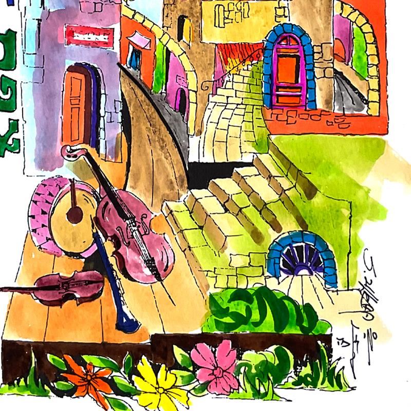 City of Safat by Zilkha Original. "City of Safat" is a one-of-a-kind hand watercolored mixed media on paper by Sami Zilkha, hand signed by the artist. Includes Letter of Authenticity. Measures approx. 9" x 12" (border), 7" x 10" (image).