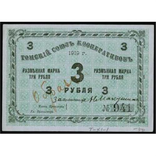 <style type="text/css"> body, td, th { font-family: Arial, Helvetica, sans-serif; font-size: 12px; color: #482424; margin: 0px; padding: 0px; } #header { background-image: url(http://www.bowersandmerena.com/ebay/images/template_v3_01.gif); clear: both; background-color: #590303; border-top-width: 2px; border-top-style: solid; border-top-color: #B38C4F; } #header #header_wrapper { height: 75px; clear: both; width: 800px; margin-right: auto; margin-left: auto; background-image: url(http://www.bowersandmerena.com/ebay/images/template_v3_03.gif); background-repeat: no-repeat; background-position: right; color: #F3EDCC; } #header #header_wrapper #header_logo { float: left; height: 75px; width: 444px; background-image: url(http://www.bowersandmerena.com/ebay/images/template_v3_02.gif); background-repeat: no-repeat; font-size: 10px; text-transform: capitalize; color: #B38C4F; } #header #header_wrapper #header_right { float: left; height: 75px; width: 356px; text-align: right; } #header #header_wrapper #header_right #headerLoginBtn { margin-bottom: 30px; } #header #header_wrapper #header_right input#txtSearch { color: #B49056; border: 1px solid #B49056; width: 175px; padding-top: 3px; padding-right: 3px; padding-bottom: 4px; padding-left: 3px; } #nav { height: 37px; background-image: url(http://www.bowersandmerena.com/ebay/images/template_v3_05.gif); clear: both; } #nav #nav_wrapper { height: 35px; width: 800px; margin-right: auto; margin-left: auto; border-left-width: 1px; border-left-style: solid; border-left-color: #B38C4F; } #nav #nav_wrapper a { padding-right: 15px; padding-left: 15px; border-right-width: 1px; border-right-style: solid; border-right-color: #B38C4F; height: 25px; padding-top: 10px; display: block; float: left; text-decoration: none; font-weight: bold; color: #5D0303; } #nav #nav_wrapper a:hover { color: #B38C4F; } #nav #nav_wrapper #search { float: right; padding-top: 7px; } #nav #nav_wrapper #search #txtSearch { font-family: Arial, Helvetica, sans-serif; font-size: 10px; text-transform: uppercase; color: #D2AE75; border: 1px solid #B38C4F; padding: 3px; } #content_bgd { background-image: url(http://www.bowersandmerena.com/ebay/images/template_v3_09.gif); background-repeat: repeat-y; background-position: center; padding-top: 15px; padding-bottom: 15px; background-color: #FBFBDB; } #content_wrapper { clear: both; height: auto; width: 800px; margin-right: auto; margin-left: auto; } .LotDetailWhite { line-height:normal; font-size:13px; font-family: arial,helvetica,sans-serif; color: White; font-weight: bold; } .LotDetailInformation { line-height:normal; font-size: 13px; font-family: arial,helvetica,sans-serif; } .LotDetailMessage { line-height:normal; font-size: 13px; font-family: arial,helvetica,sans-serif; color: red; } } tr.HeaderAuctionTitle td { color: #000000; font-weight: bold; padding: 2px; background-image: url(http://www.bowersandmerena.com/ebay/images/template_v3_05.gif); background-repeat: repeat-x; border-bottom-width: 1px; border-bottom-style: solid; border-bottom-color: #B38C4F; } table.AuctionSummary a, table.AuctionSummary a:link, table.AuctionSummary a:visited { color: #0000FF; text-decoration: none; } } td.tableHeaderLeft { border-left-width: 1px; border-left-style: solid; border-left-color: #B38C4F; } td.tableHeaderRight { border-right-width: 1px; border-right-style: solid; border-right-color: #B38C4F; } td.tableCellMiddle { border-left-width: 1px; border-left-style: solid; border-left-color: #B38C4F; border-right-width: 1px; border-right-style: solid; border-right-color: #B38C4F; padding: 5px; } tr.footer td { border-top-width: 1px; border-top-style: solid; border-top-color: #B38C4F; } </style> </head> <body> <div id="header"> <div id="header_wrapper"> <div id="header_logo"> </div> <div id="header_right"> </div> </div> </div> <div id="nav"> <div id="nav_wrapper"> <a href="http://www.bowersandmerena.com">Our eBayLive Auctions</a> <a href="#PaymentInfo">Payment Information</a> <a href="#ShippingInfo">Shipping Information</a> <a href="#About">About Bowers and Merena</a> </div> </div> <div id="content_bgd"> <div id="content_wrapper"> <table width="100%" border="0" cellpadding="5" cellspacing="0" class="AuctionSummary"> <tbody> <tr class="HeaderAuctionTitle" style="height: 25px;"> <td align="left" class="tableHeaderLeft" > </td> <td align="center" class="tableHeaderRight"> <span style="font-size: large;">Lot #2316. East Siberia. City of Tomsk Scrip or Exchange Note Issues.</span> </td> </tr> <tr> <td colspan="3" class="tableCellMiddle"> Lot of 5 notes. Includes 1919, City of Tomsk Scrip Issue, 3 Rubles (Overprinted Specimen) and 5 Rubles, Denis 1563, P-NL; ND, (ca. 1920s) Novokuznetsk Enterprise Mining Scrip Notes, 3; 5 and 10 Rubles, Denis 1565. All of the notes range between AU and CU. Scarce Siberia assortment of scrip notes.