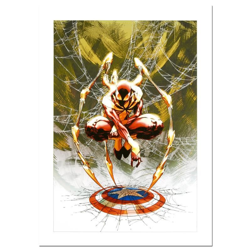 A piece of comic book history, this limited edition print, drawn by Michael Turner (1971-2008), depicts popular characters from the Marvel Universe. Michael Turner started his career at Top Cow Productions, where he co-created the popular titles "Witchblade" and "Fathom". Eventually, Turner would contribute cover art to the Marvel titles X-Men, Spider-Man, and the Fantastic Four, among others. His career was cut tragically short when he died of bone cancer in 2008. "Civil War #3" is a numbered limited edition giclee on canvas by Michael Turner presented by Marvel Comics. Includes Certificate of Authenticity! Measures approx. 15" x 22" (image).