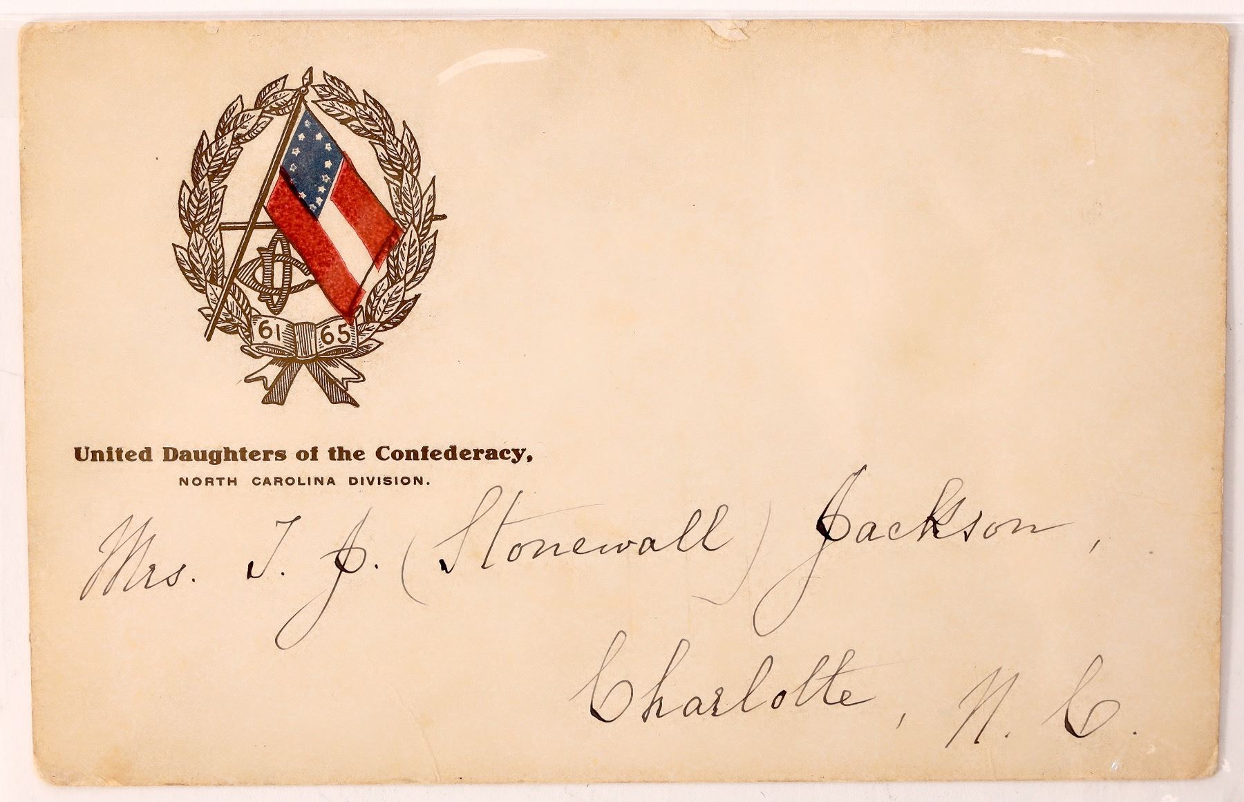 This is an autographed card from the "United Daughters if the Confederacy, North Carolina Division"
