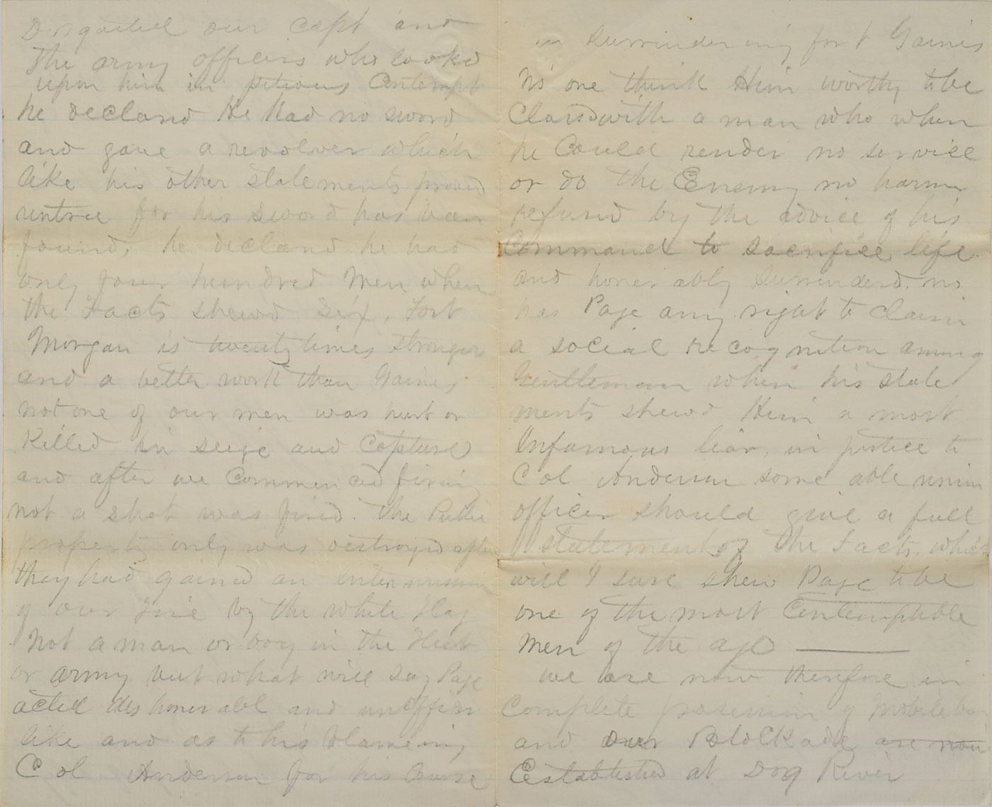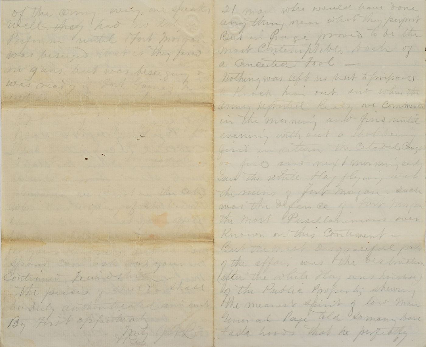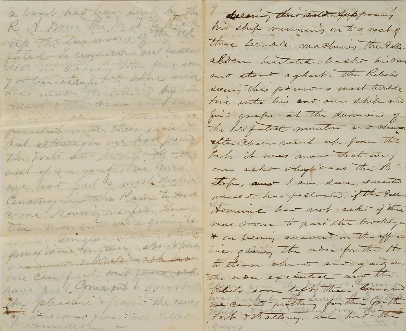 Extraordinary ALS signed “John H. Brooks,” 24 total pages on a set of six 5 x 8 sheets, lightly lined, (the first 11 pages in ink, the balance in graphite) August 5, 1864. An incredible firsthand account of John Brooks, the steward of Admiral David Farragut, written while aboard the flagship US Hartford during the Battle of Mobile Bay. The first four pages consist of a letter Brooks addressed to his wife on the day of battle, in part: "We got underweigh this morning after a cup of coffee and sailed in two by two the iron clads on our right or starboard side. I cannot tell you of how terrible the battle was but even our admiral admits it was the most severe ever we engaged in our ship being the admiral ship the Rebel…Tennessee came up to sink us then began another battle the Hartford pouring in broadside after broadside not twenty feet from the ram and running into her nearly sinking her…we lost over twenty men killed and wounded cut up in a manner most shocking…we are now in the Bay of Mobile and will try to compel the forts guarding its entrance to surrender after which we will be ready for home…I hope you will soon read this letter which we plan to send tonight, which if captured by the enemy will serve him in showing the deprived the best of wives a letter that would relieve her aching heart. Oh, this fighting was terrible but I was never more cool…I hope soon to write you full particulars and only now wish to relieve you and my dear mother of the anxiety of my last letters."